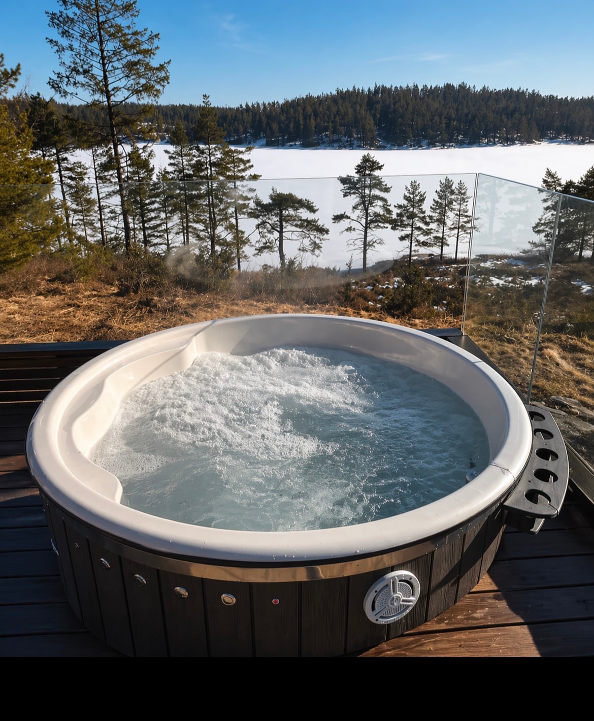 Recharge your batteries with luxury at this unique and quiet accommodation. Beautiful romantic little cottage with views that give peace of mind. Large terrace/jetty with outdoor furniture, gas grill and wood-fired hot tub! (IMPORTANT! The hot tub does NOT have bubbles or massage, just lovely hot water). Inside there is a bedroom with a double bed, bathroom with toilet and shower, well-equipped kitchen and living room with TV. Attic/mezzanine with 2 single beds, 1.80 ceiling height. Free rental of paddleboard and small kayak.