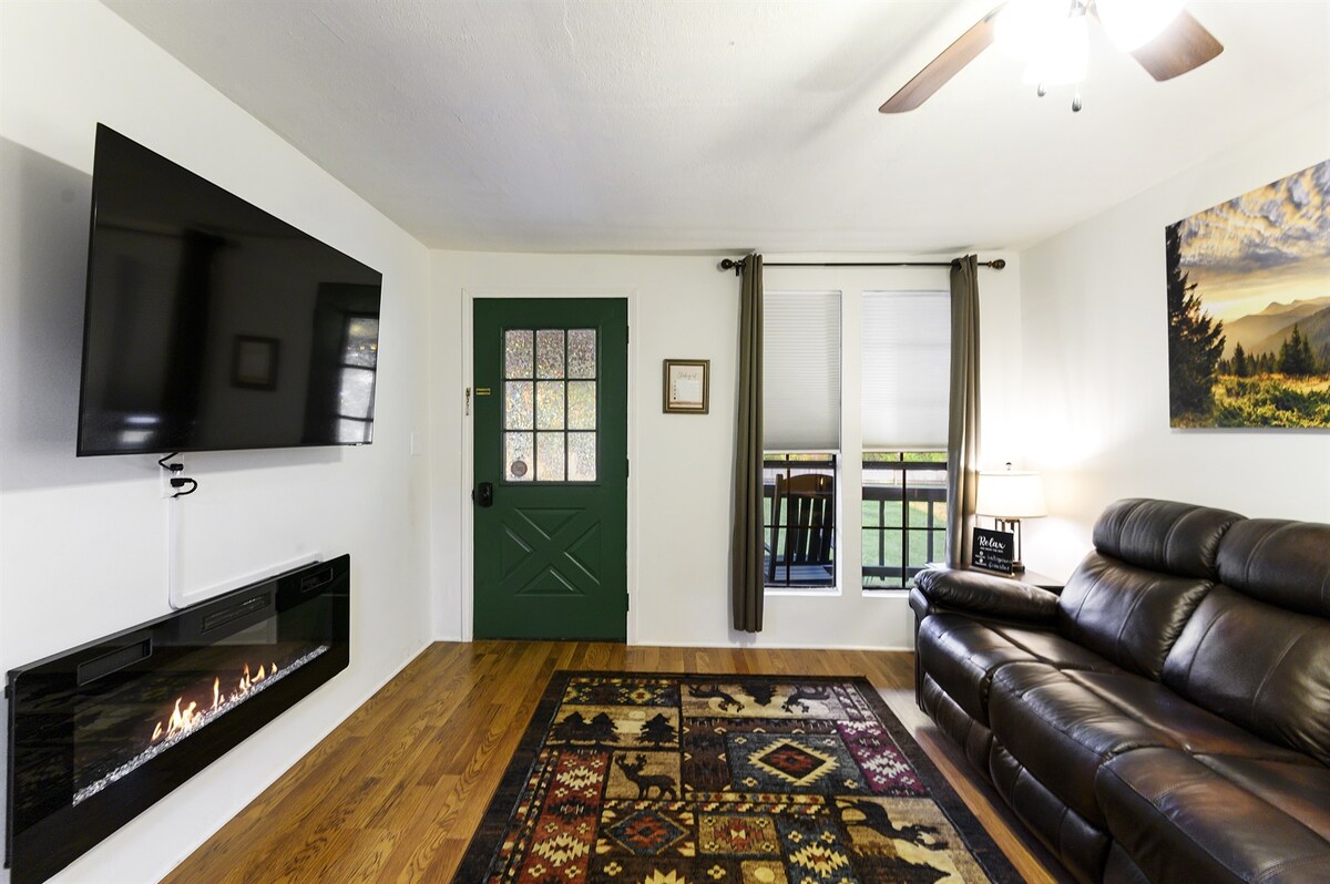 2Br Cabin with hot tub, BBQ, 55" Smart TV, W/D.