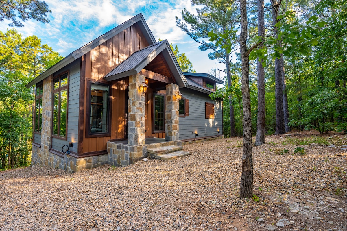 Sugar in the Pines is a brand-new luxury honeymoon cabin on 2 private acres near the Ouachita Mountains. Floor-to-ceiling windows bring the pine forest indoors. Soak in the hot tub while enjoying the outdoor fireplace or stargaze under the open sky. Your romantic escape awaits—we can’t wait to host you!