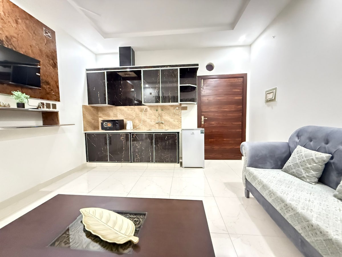 Wah Cantt offers a comfortable and well-designed living space featuring one bedroom, one bathroom, and a spacious living room. A private terrace provides a relaxing outdoor retreat, while the balcony overlooks the garden, adding a pleasant, refreshing view. This is a family-only apartment. Single guests are welcome, and to maintain a comfortable environment for all residents, unmarried couples are kindly not accommodated.
