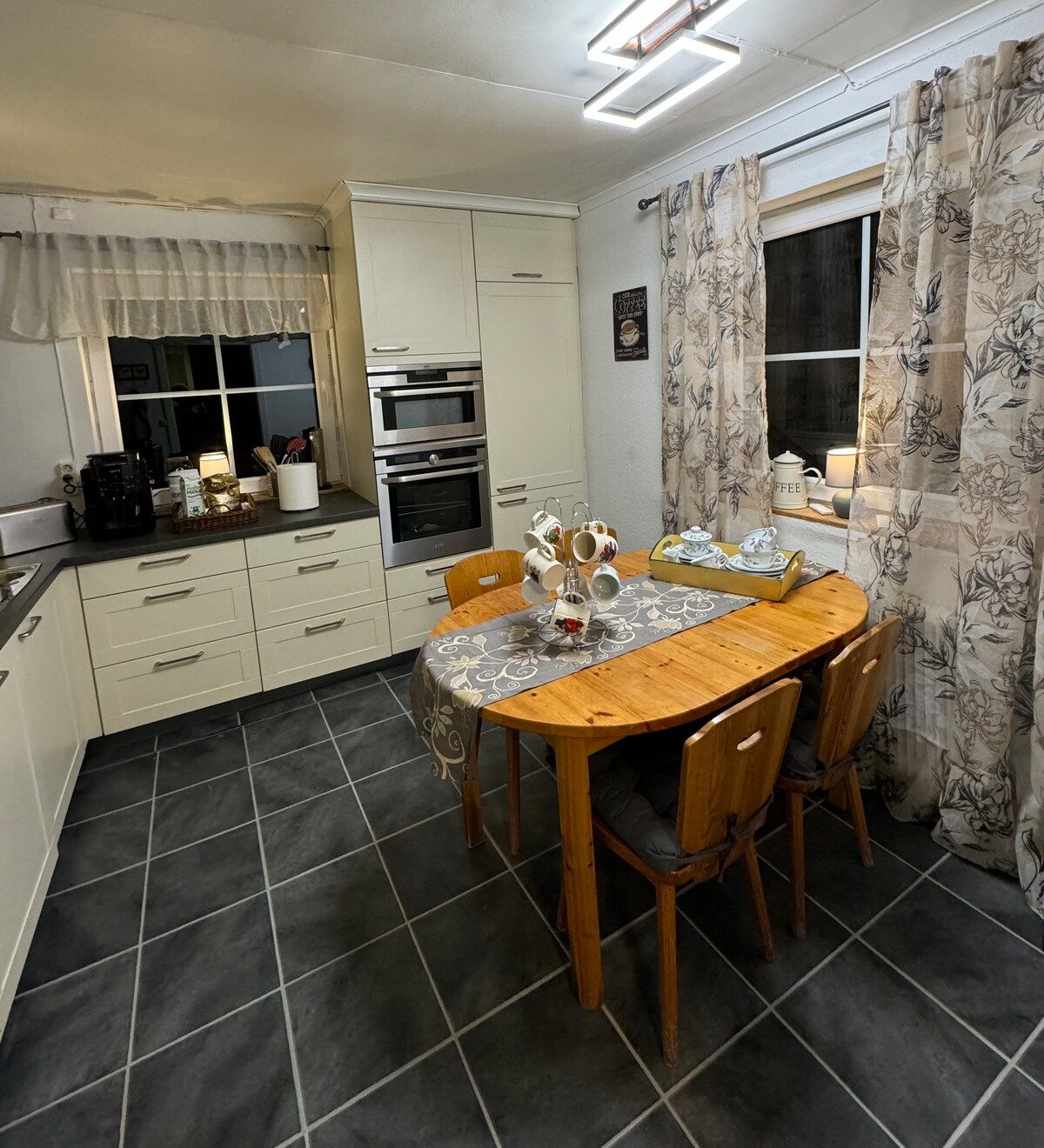 Large windows let in nature and light. A cozy mix of light wood, personal vintage details and oriental elements. You live close to vast wilderness in Grövelsjön and Foskros, three ski resorts and fly fishing in Storån, as well as neighboring Idre Golf. You have a nice forest behind the property with blueberries and mushrooms, a 3.5 km plowed walking path and a cold dip in the river ten minutes walk away. As well as bike paths. We hope you will love our house, and the nature that Idre and its surroundings offer.