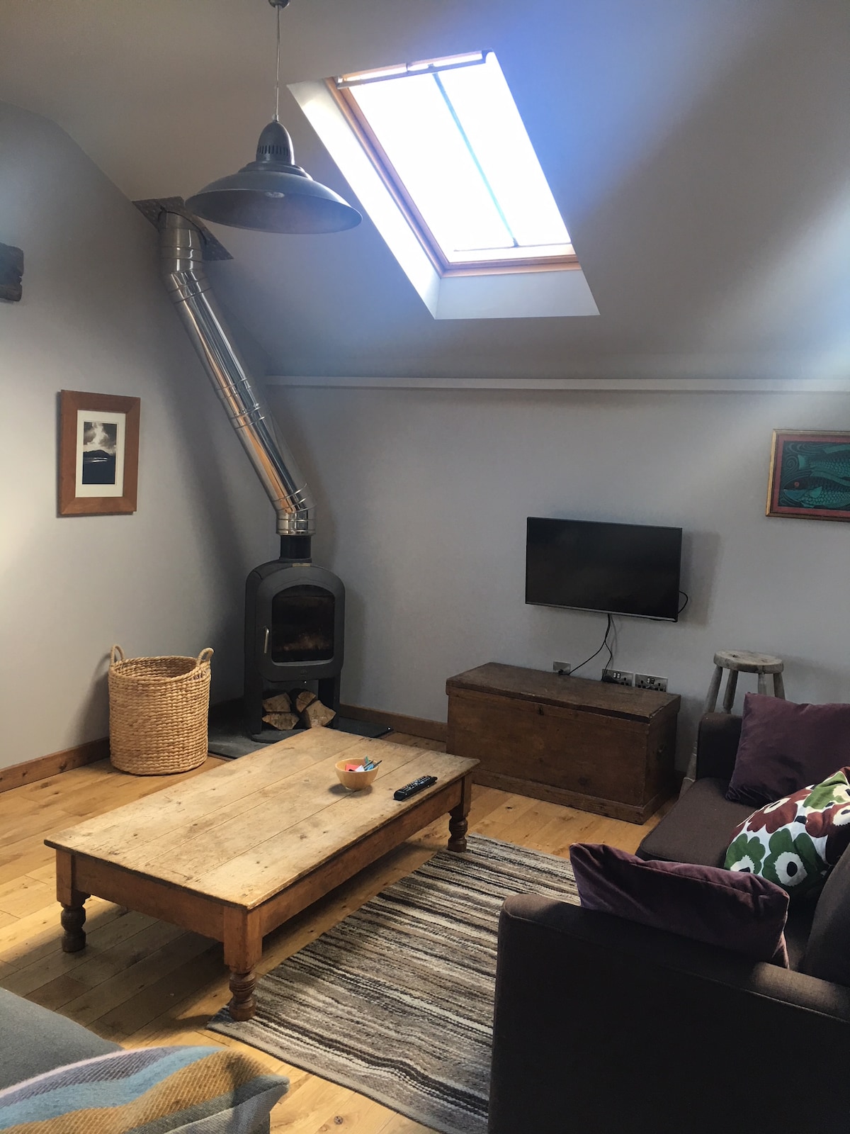 Set beside the apple orchard at The Old Sheep Farm in Eryri National Park (Snowdonia), The Hayloft is a dog-friendly, one-bedroom crog-loft hideaway a short drive from the coast. Exposed beams, a wood-burner and a freestanding roll-top bath give the cottage a warm, settled feel, while stunning views stretch across the hills towards the sea. A calm, characterful and luxurious place for slow mornings, long walks and unhurried stays.