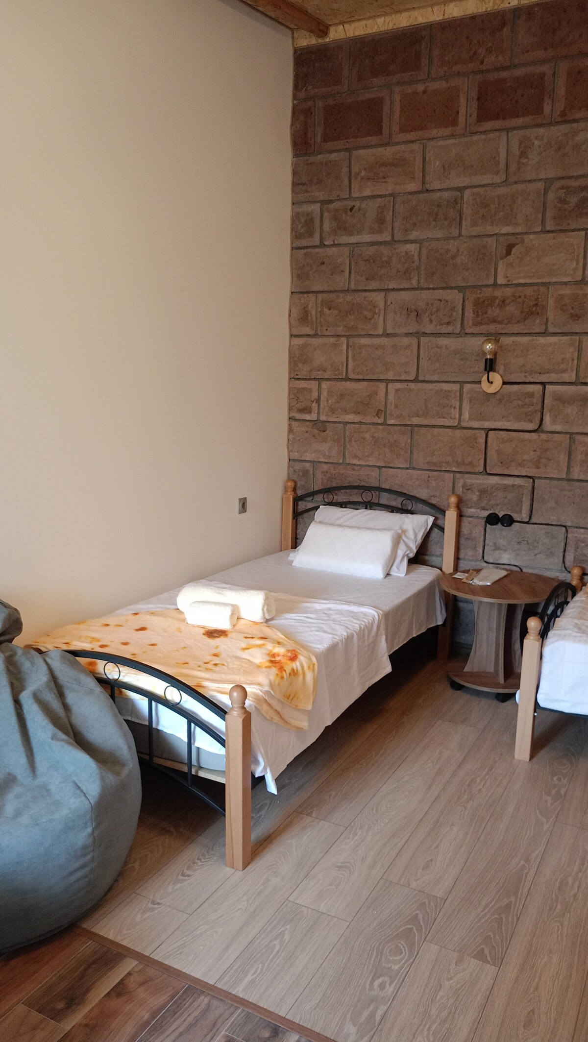 The Nest is a unique place. It is located in the center for Jermuk city. The Nest has 1 bedroom with a king size bed and a babycrib. There is a sofa for 2 people in the dining room and a folding armchair (for 1 person). You can find 2 beanbags for fun and a lots of details. Visit Jermuk, visit the Nest.