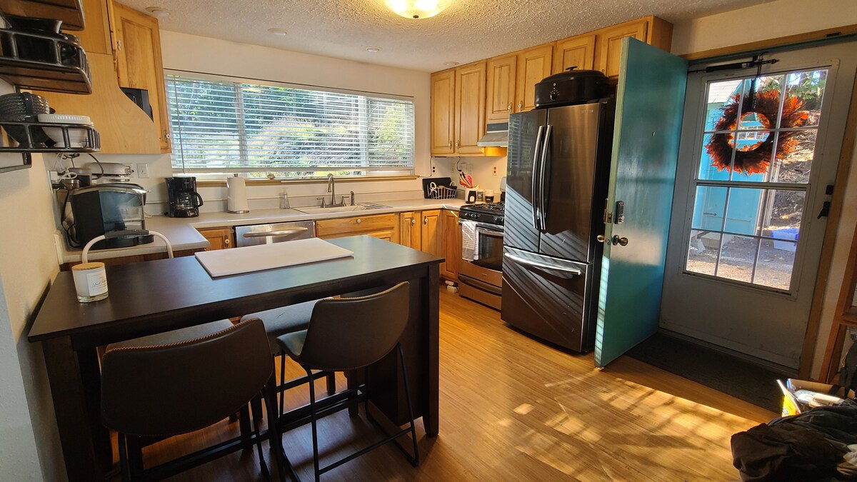 The Captains Quarters at Sylvanrude is a step into a forest of Douglas Fir, Cedar, and Hemlock. The small apartment is above a garage, and is equipped with a coved ceiling bathroom, (tall folks beware) full kitchen, cozy sleeping area with a new queen bed on antique frame, TV with DVDs only, (wifi is through MIFI, a Verizon source), a private beach fire pit with beach access, and the most amazing sunsets over Case Inlet. If you are a bird watching enthusiast, don't forget the binoculars!