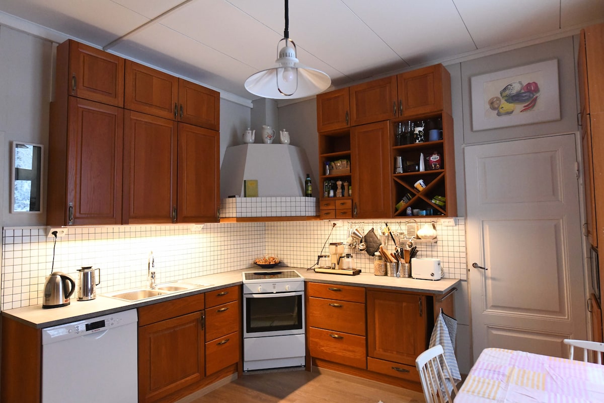 A peaceful summer villa in Jaala, in a peaceful forest landscape by the lake. A cozy retreat for the mind, comfortably accommodating 2-4 people. The villa has its own wood-heated sauna and an outdoor beach sauna heated with wood. Well-maintained yard area and plenty of outdoor space. In the nearby terrain, there is a nature trail, three huts and delicious berry terrains with diverse waters. The nearby terrain offers a variety of routes for both jogging and trail running.