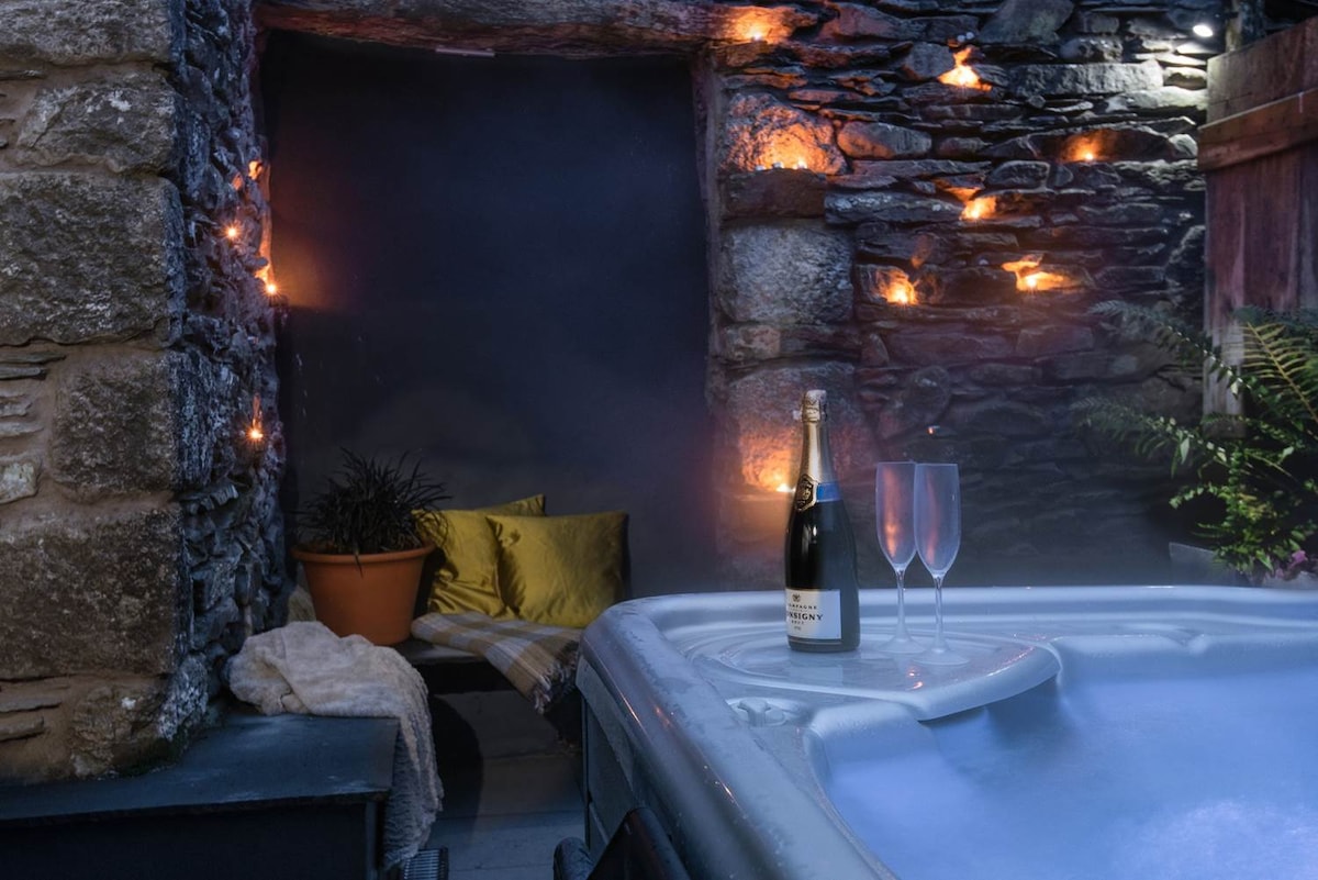Upper Crumble a romantic retreat for two set in an idyllic rural location with beautiful views. It has its own Hot Tub in a private courtyard. Perfectly located to access The Lakes and the medieval village of Cartmel. Cosy log stove, Wifi and private car park. Our large private gardens can be viewed 4-6pm summer time or by arrangement and a map is left in the cottage. The Back Garden Section shows photos of these areas.