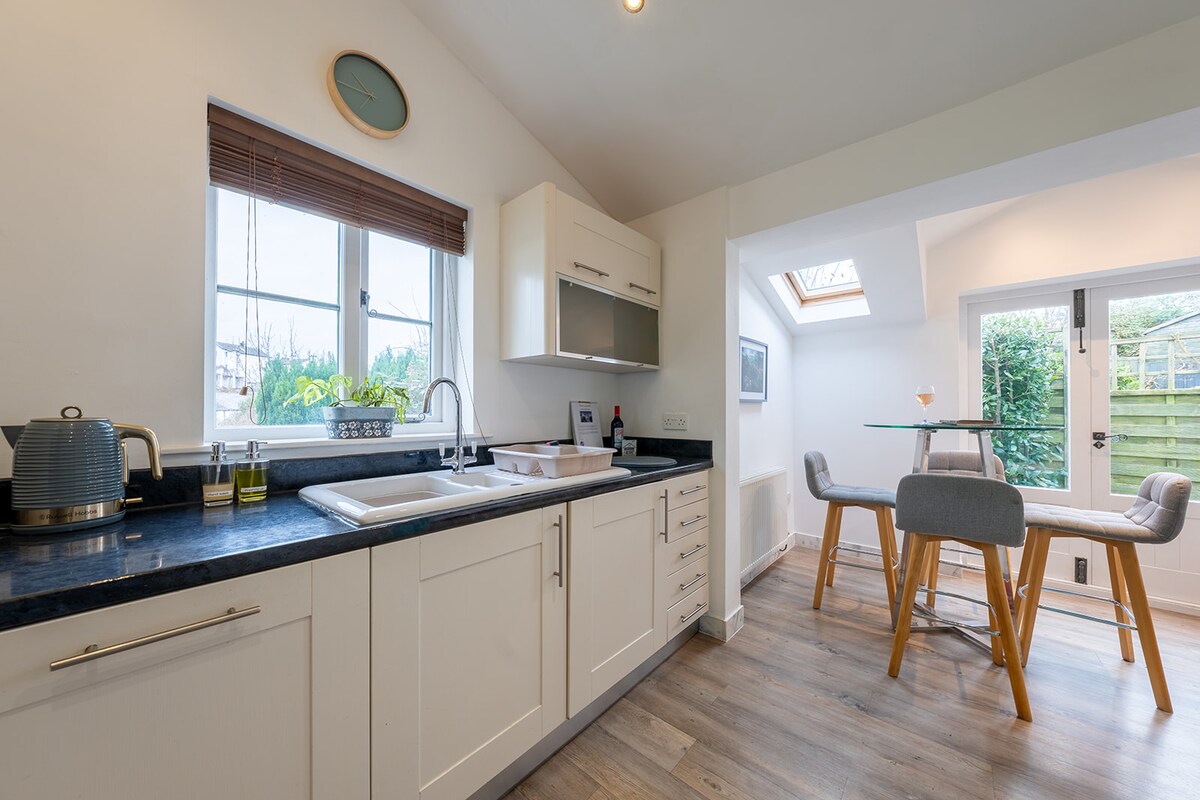 A lovely little accommodation, comfortable and cosy with a country cottage garden and a beautiful view of the fell beyond. It's located in the village of Allithwaite, just 1.5 miles from the picturesque Cartmel, famous for its races and wonderful pubs, and restaurants. There is a driveway for easy parking. The rear garden, shared with the main house, has comfortable furniture. The single owner has the main house, though she is often away. Local amenities include a corner shop and a pub.