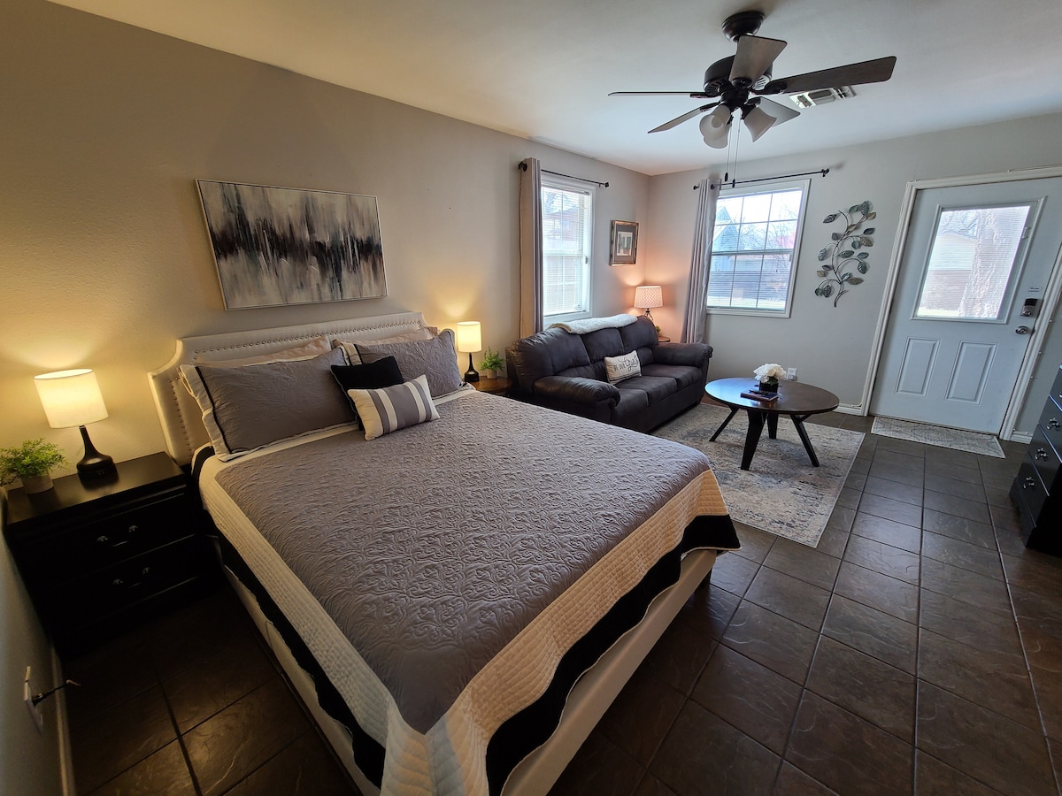 Settle into our cozy private studio located behind our main residence in a quiet historic neighborhood. The space includes a comfortable queen bed, a sofa bed best suited for one small guest or a child, a 46” TV with streaming apps, and a compact kitchenette for light meals and coffee. This studio is best suited for solo travelers or couples seeking a calm, comfortable place to stay close to downtown and local restaurants. Designed for quiet, respectful stays.