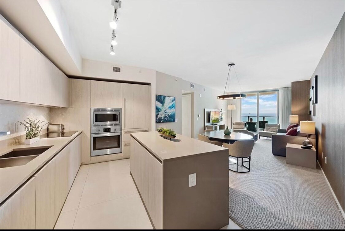 Fully furnished 1 bed/1 bath condo in the heart of Sunny Isles Beach, with washer/dryer inside, kitchen, balcony, tall windows and OCEAN view from living and bedroom. Enjoy your stay with a 24 hr valet service, room service, as well as the use of the spa, fitness center, restaurant, pool and beachside service, bar, and concierge services. It's a perfect way to have worry-free beachfront vacation with 1st class amenities. * Condo located in the hotel and guests pay resort fee (aprox $45/day)