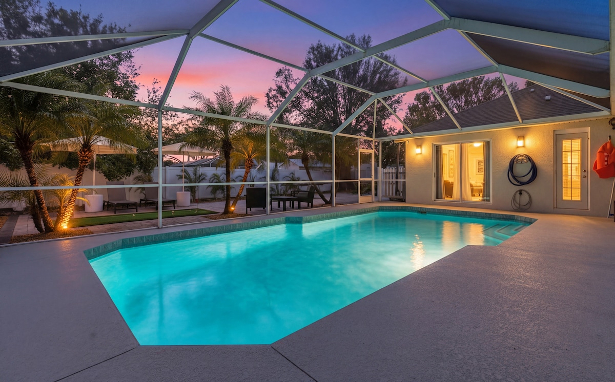 Enjoy easy living in this updated tropical home! Your private screened lanai is perfect for seamless indoor/outdoor relaxing, with a heated pool and covered dining/lounge area with a 58" outdoor TV! The interior of the home is bright and open with cheerful coastal decor and plenty of room to spread out. We provide everything you need with a well-stocked kitchen, gas grill, game room, beach gear, towels, EV Charger! In a quiet neighborhood with quick access to AMI beaches IMG, parks, and trails!