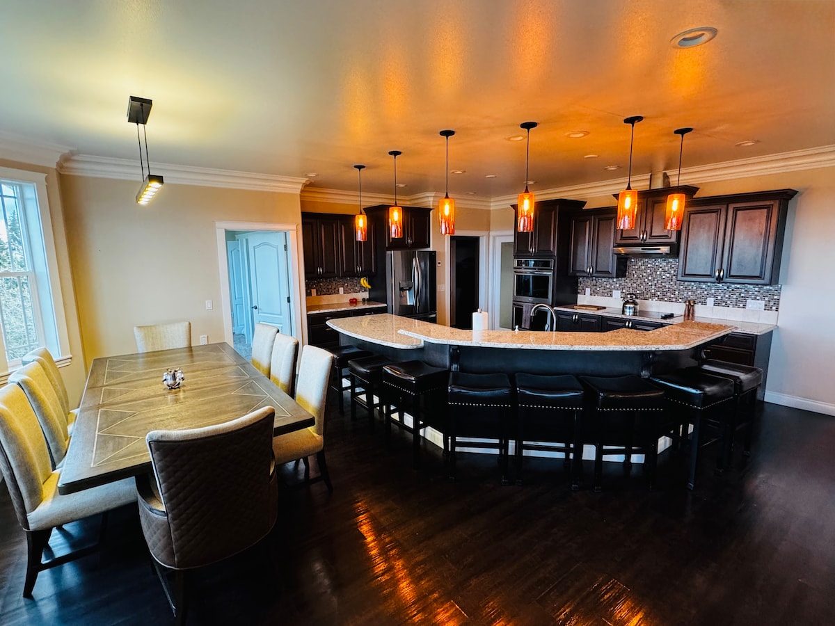 Custom built new home in the heart of Homer. Decorated for style, designed for comfort and welcome amenities for your stay. A fresh cup of coffee and snacks, available upon arrival, to enjoy the amazing views the house has to offer. Relax in the comfort of this new house, enjoy movies in every room, and sleep well in the comfortable beds. The house is located close to amazing restaurants, the spit and many other activities. Make yourself at home.