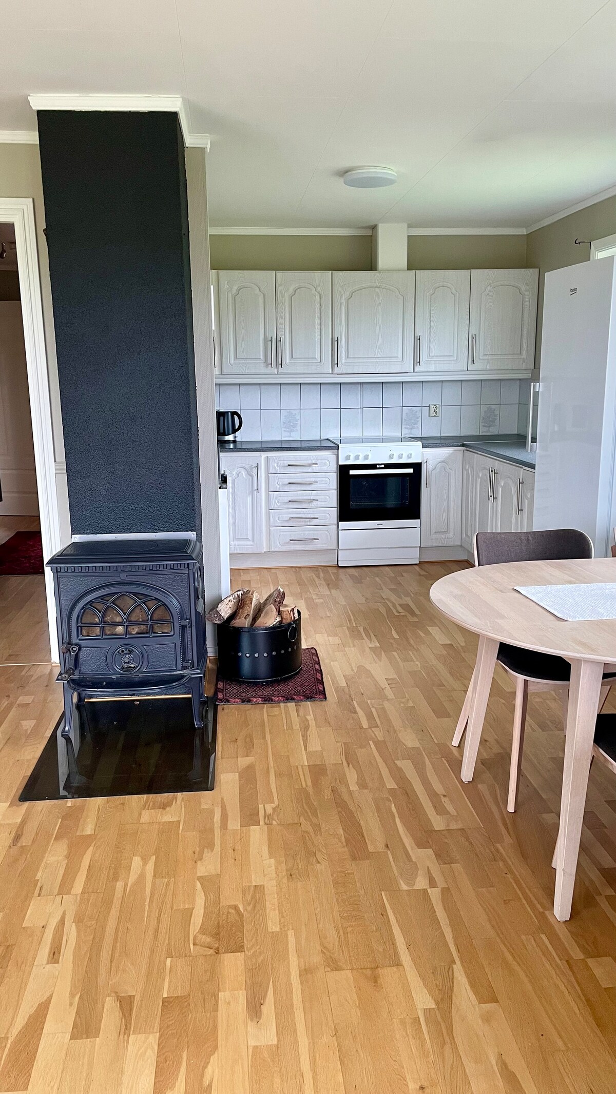 Forget your worries in this spacious and peaceful place. Renovated old cozy house. 4 bedrooms. Porch outside the bedroom overlooking the lake. There is also a spacious veranda downstairs with a small group of garden furniture. Fire pit for cozy evenings. No smoking. Pets allowed. Wood burning. Do not burn anything other than wood in the oven.