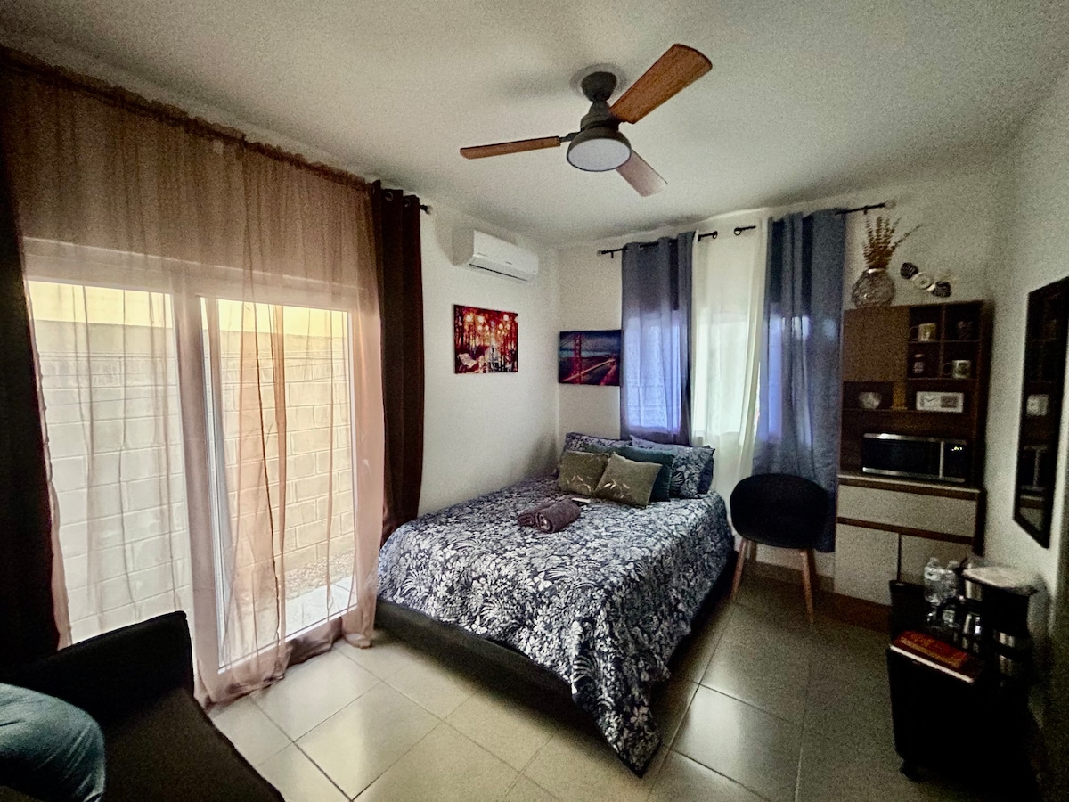 Enjoy a stylish experience in this cozy, centrally located accommodation, close to malls, supermarket, restaurants, cafes and in one of the prestigious areas of Tegucigalpa. It has all the comforts for a pleasant and pleasant stay. Fully furnished and equipped for 2 people. It consists of 1 bathroom, 1 air conditioner, 1 parking space, 1 TV, Wi-Fi, kitchen with breakfast bar, laundry area, and balcony.