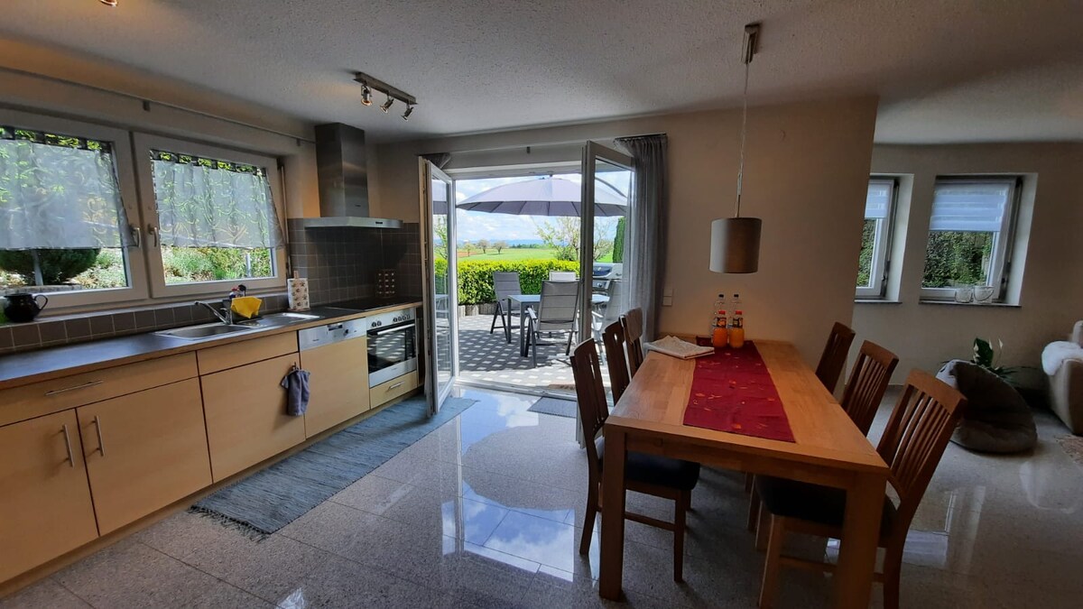 Spacious apartment with upscale equipment. Suitable for families or business travelers. For up to 4 people. 2 bedrooms, separate toilet, large bathroom and a beautiful terrace. Storage room for bicycles, strollers, etc., as well as 2 parking spaces. Located between the Black Forest and the Swabian Alb, you can reach the A81 from here in about 10 minutes. The Black Forest National Park can be reached in 30 minutes. Pets only by arrangement. Smoking only outdoors.