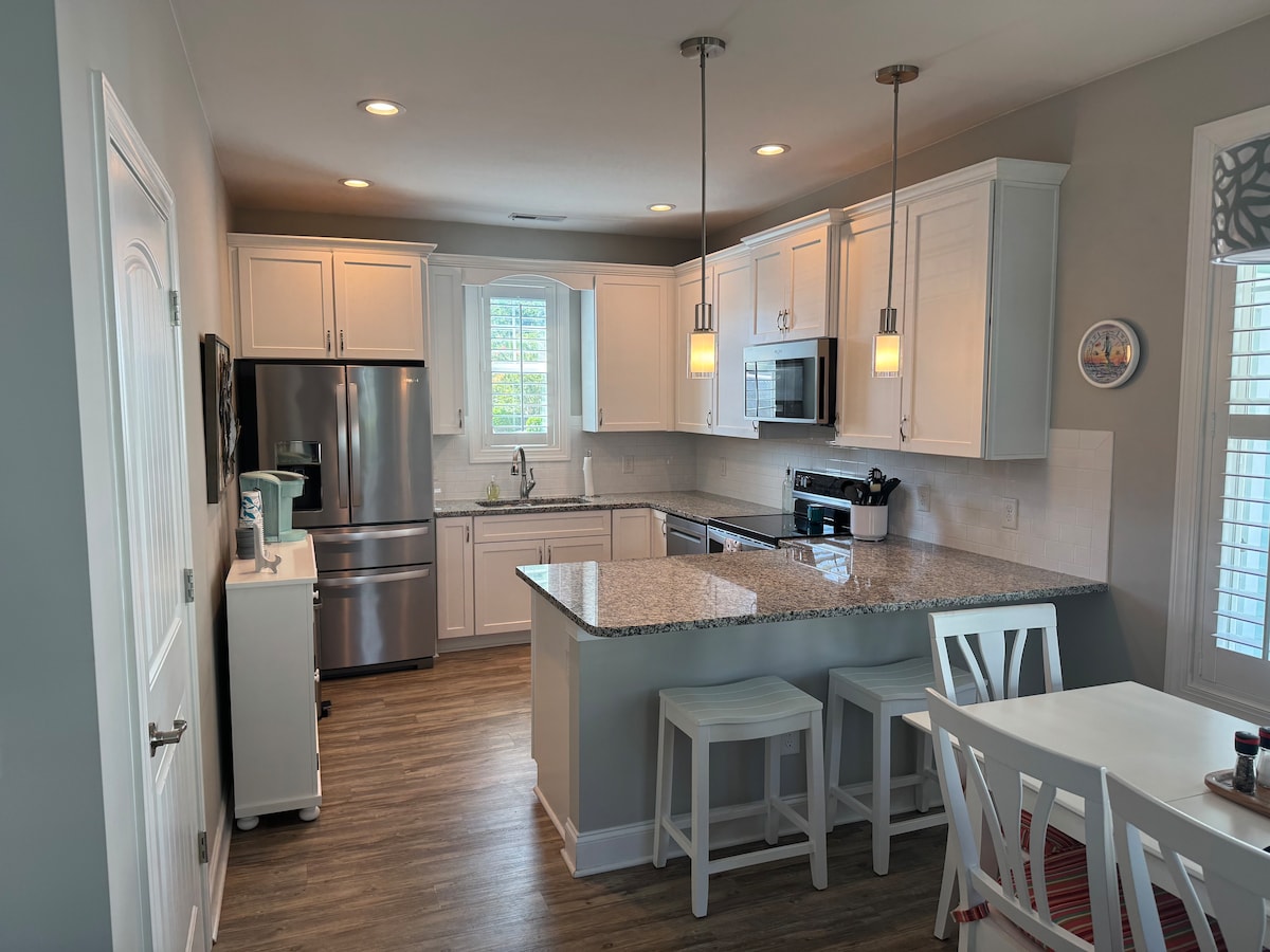 We've created a cozy, beach-themed getaway nestled in an adorable neighborhood, just a short drive to the ocean. We redid the entire home with all new appliances, flooring, and amenities. It's decorated to help each and every guest feel at home at the beach. The home is within 5 minutes of Sunset Beach. 10 minutes to North Myrtle, Cherry Grove. Both Wilmington and Myrtle Beach are within 40 minutes. There are plenty of restaurants, grocery stores, and bars very near the home as well.