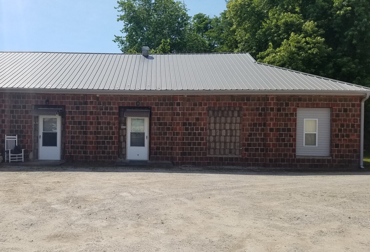 What was originally a hay loft has been converted into a country chic barn apartment. We would love to host you and your friends and family (including actual kids and fur kids) on our property. Children love collecting eggs from the chicken coop and everyone loves a short hike to the creek. We are only an hour from Mammoth Cave National Park and an hour from Holiday World in Santa Claus Indiana. The local community has charming little shops, several restaurants, and The Beaver Dam amphitheater.