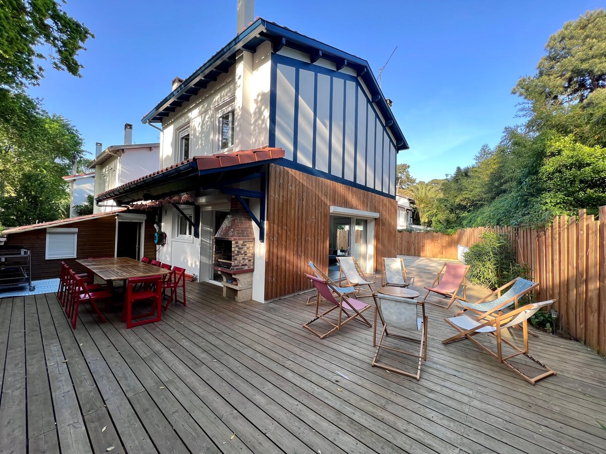 Évasion nature entre océan et forêt – Un havre de paix dans les Landes Offrez-vous une parenthèse de sérénité dans cette grande maison en bois, baignée de lumière. Idéalement située à seulement 200m de la plage et 300m de la forêt, elle permet de profiter pleinement de la nature, entre balades sur les pistes cyclables et détente au cœur du jardin exotique luxuriant. À 2 pas du Pays Basque, cette maison est parfaite pour les familles et les groupes en quête de convivialité et de grands espaces.
