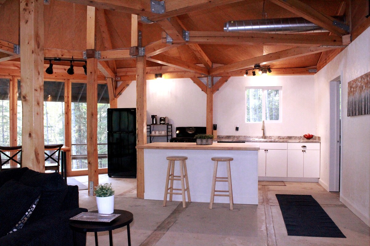Private guest suite in a rural subdivision at the base of Hatcher Pass. Inside is a stylish and cozy one bedroom guest suite with a full kitchen that is furnished with art and goods made by local artists & artisans. Outside you'll find a patio with a smokeless fire pit and a chicken coop. In winter, you'll be close to Hatcher Pass, Skeetawk Ski Area, and all the winter recreation opportunities available in the area.