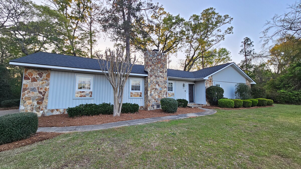 This family-friendly home is perfect for travelers with pets or kids. With three spacious bedrooms, including two king beds and one queen bed, you'll have plenty of room to relax. A large den with a foosball table adds to the fun, the ideal getaway for families or groups. Conveniently located in a charming neighborhood just off Highway 96, you'll be close to shopping, dining, Houston Medical Center, and Robins Air Force Base. Enjoy high-speed WiFi, smart TVs and a fully equipped kitchen!