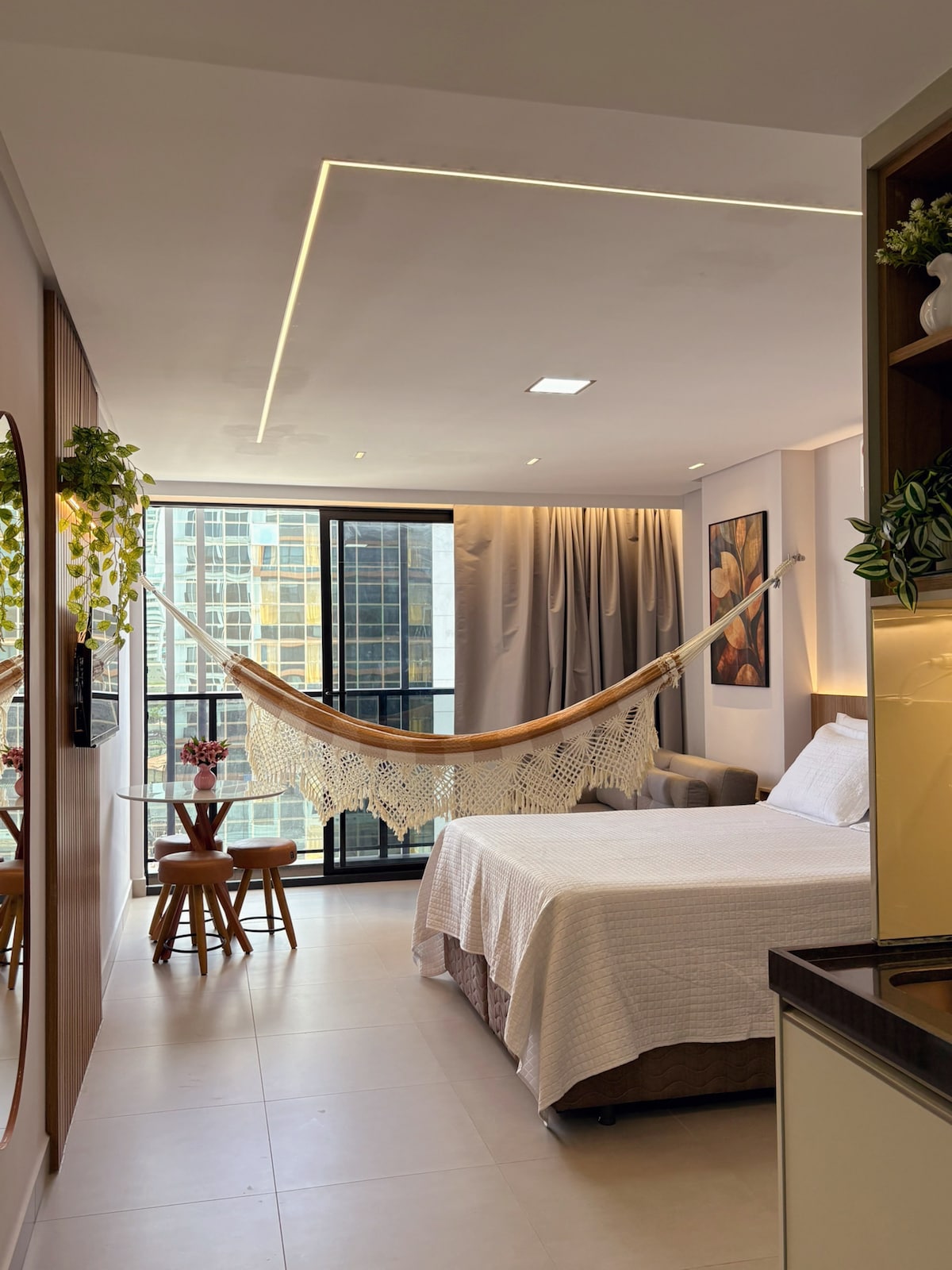 Lindo espaço com localização privilegiada em tambaú. Próximo ao letreiro com o nome de João Pessoa, bares, restaurantes. O espaço dispõe de ar condicionado split, automação por comando de voz, WIFI, cama Queen, sofá cama, cozinha com utensílios, geladeira, microondas, sanduicheira, liquidificador, purificador de água , cafeteira de cápsula, fogão cooktop elétrico. O prédio dispõe de recepção 24horas e *estacionamento(rotativo).