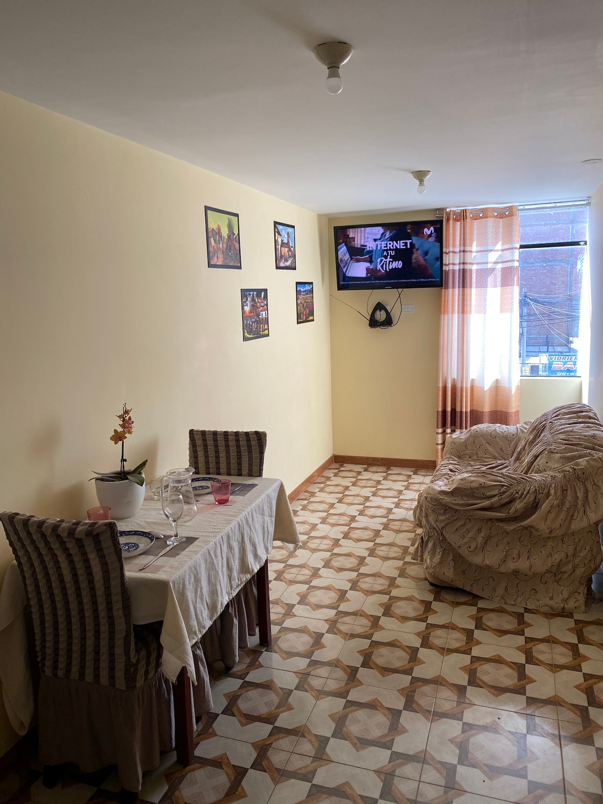Apartment located on the first floor of a new house 5 minutes from downtown Jauja, 3 meters from the Samaritana fountain, 15 minutes from the airport, ideal for visiting the Cristo Pobre church, Jauja's main square, Jauja Cathedral, the San Miguel suspension bridge, the Huancas cross, Huancayo, Concepción, Ingenio, and the Ocopa convent.
