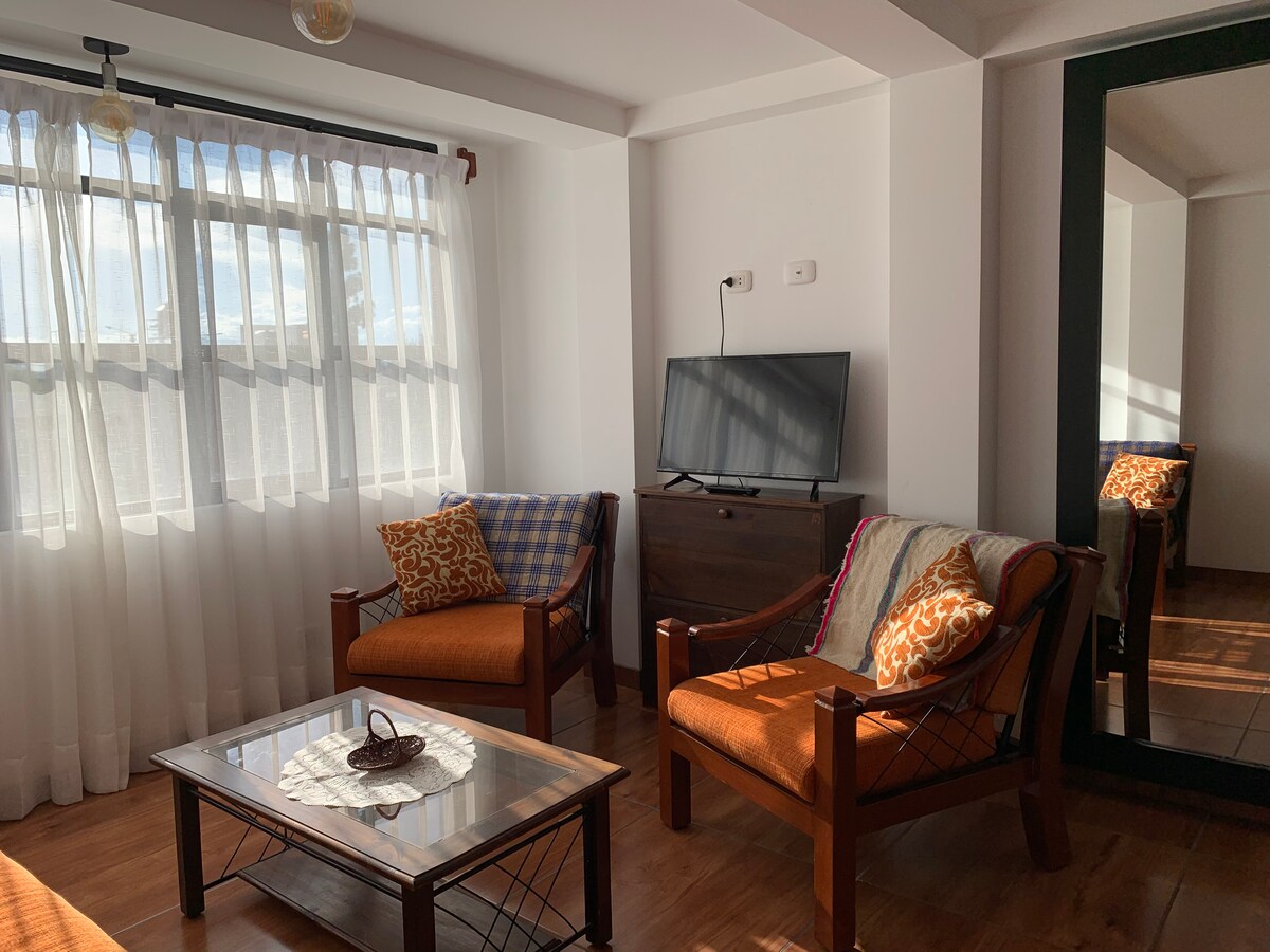 Spacious and comfortable apartment with a family and cozy atmosphere, it has everything you need to enjoy your stay, the area is very quiet and safe, with green spaces nearby where you can enjoy nature. Half a block away is the Huancayo Sports Center where you can continue with your exercise routine, we are very close to the Universidad Peruana Los Andes, a block from the Oncology clinic. We are 15 minutes from downtown. We look forward to seeing you!