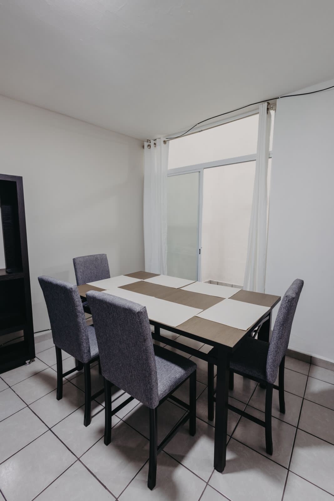 This place is ideal for families or groups looking for comfort and privacy. It has two private bedrooms, a full bathroom, a half bathroom, an equipped kitchen and a large living-dining room area. Perfect for long stays, you'll feel at home from day one! Located in a central and strategic area, you will be very close to shopping areas such as Plaza Textil Metropolitana, Texticutzeo, ideal for those who enjoy shopping and local commerce.