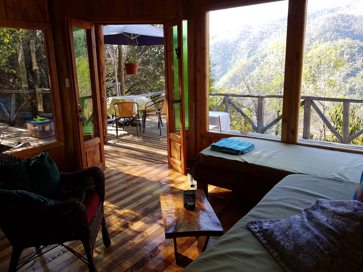 Nice cabin with a wonderful view of the Andes Mountains, very quiet and comfortable. Ideal for coming to relax, make unforgettable memories, disconnect from the city and recharge in the middle of the beautiful forests that surround this unique and family-friendly place.