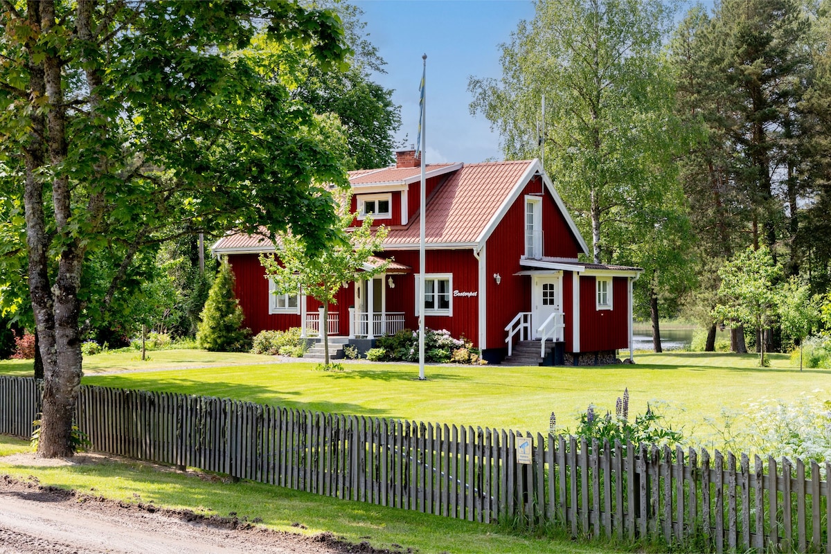 Meet our lovely red cottage in Småland surrounded by forest, hills and lakes. With all the comfort you need for a pleasant stay. Enjoy a cozy evening by the wood stove. The house has a big private garden where you can relax and make a campfire at the fire pit. Go fishing or take a swim in one of the lakes nearby. And maybe you see deer, foxes or moose from our sunny porch. Go skiing at the ski-slope, visit a moose park or go down the zippline. April-October we rent out 2 sit-on-top kayaks.