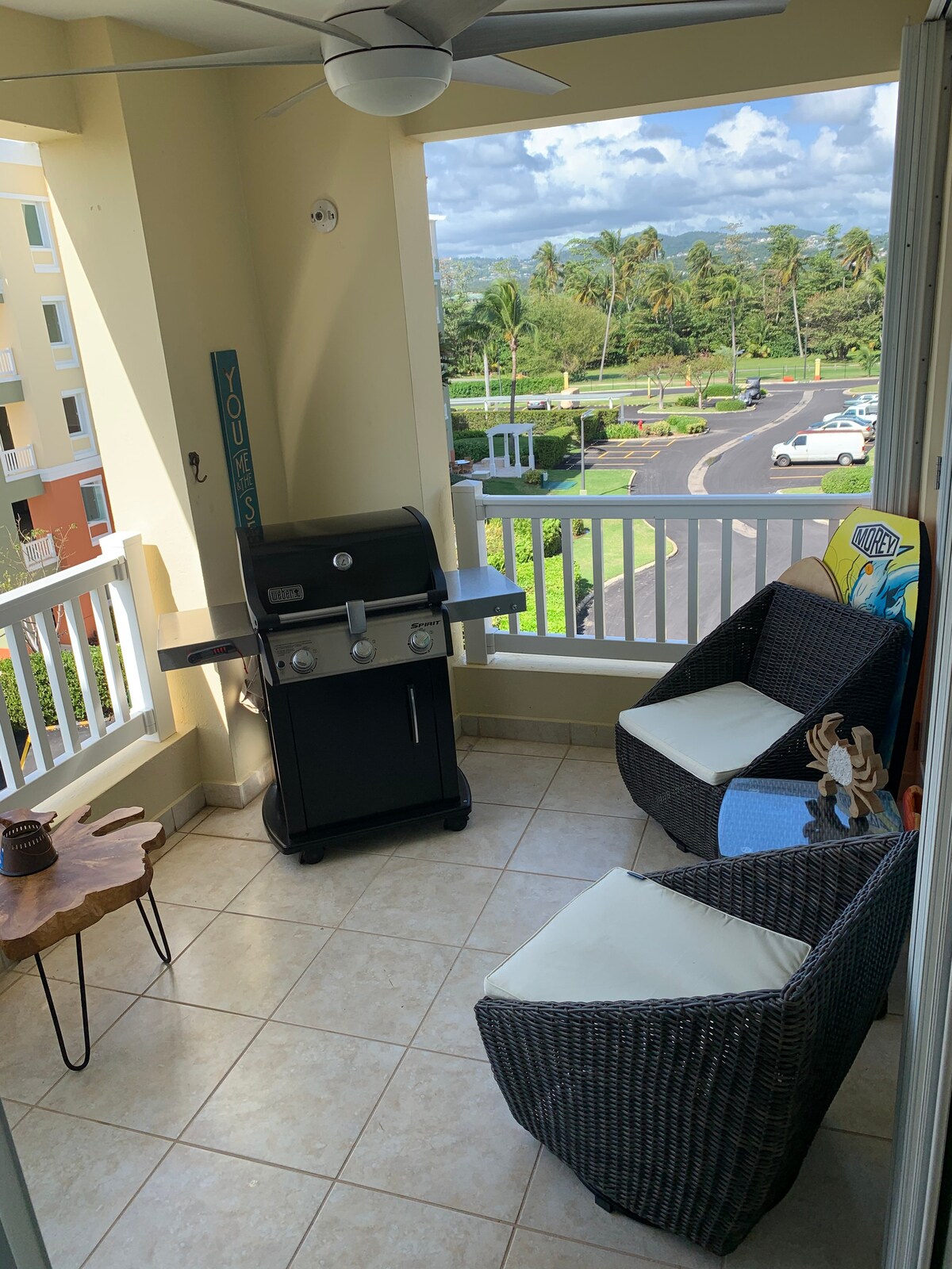 Take in the amazing morning sunrise with views of the golf course, ocean, and the island of Vieques in the backdrop and at your reach from this newly renovated and newly furnished villa! There isn't a better way to start your vacation day at the famous Beach Village community in Palmas Del Mar. The condo is the end unit on the second level. Wi-Fi, SmartTV w/Cable, Washer/dryer, Central A/C, and Pool Pass also included! All new kitchen appliances for your enjoyment! Details below!