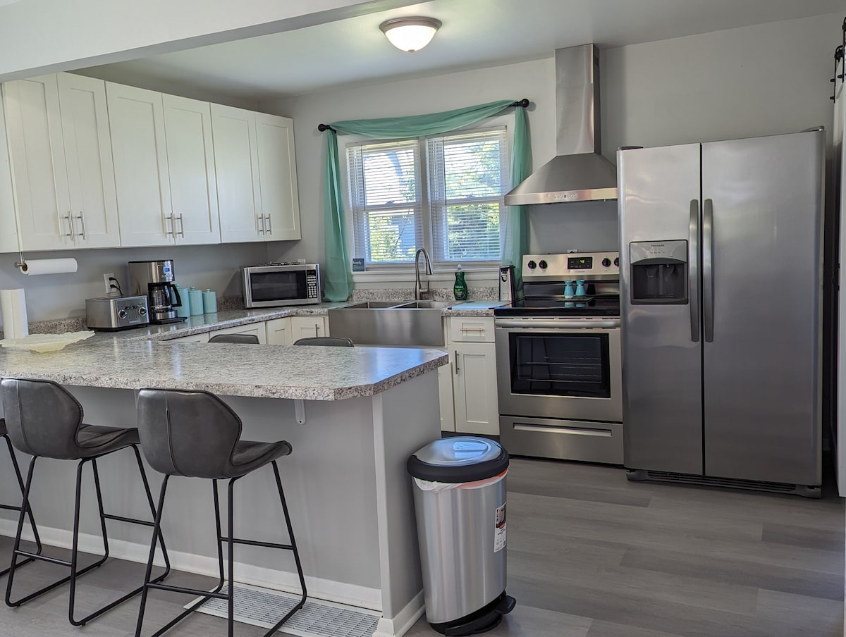 NEWLY RENOVATED in '24, we are excited to share the changes...open concept kitchen, updated cabinets and appliances, new tub/shower combo, new paint, and luxury vinyl planking throughout! We hope you love it as much as we do. We are 4 houses from Lake Erie, 3 miles to the Cedar Point chaussee and close to Sports Force. Our home is a perfect getaway for families, couples, or businessmen...at a far better price than any local ROOM in a hotel! With no reviews, you must be 21 to book.
