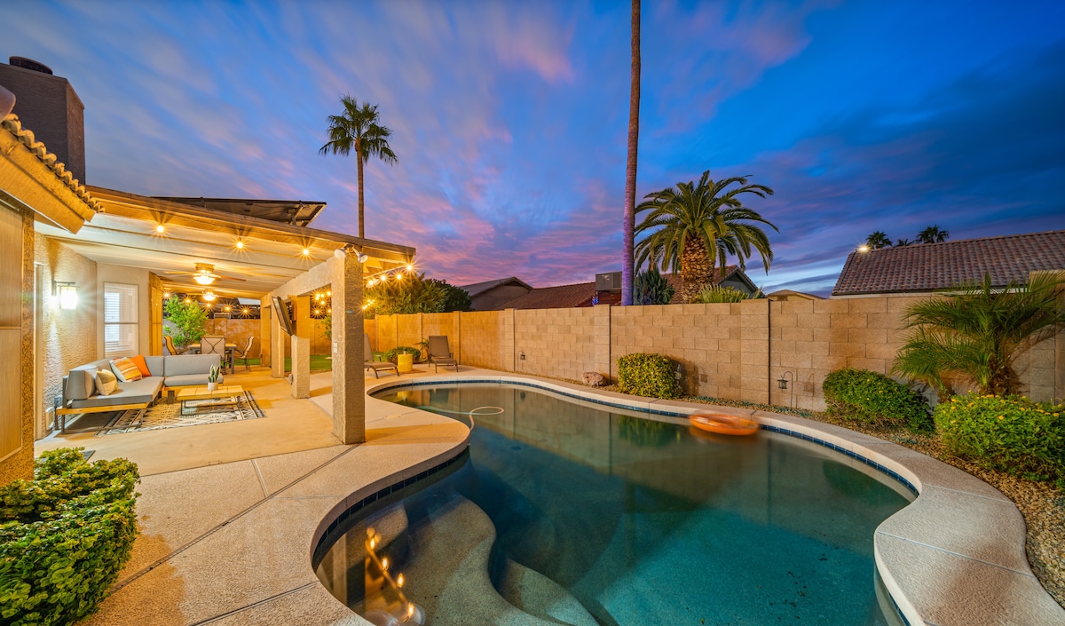 *DISCOUNTED RATES! Experience AZ in comfort! This beautifully renovated 4-bedroom home has everything you need for a relaxing getaway! With a sparkling heated pool, pool table, board games, and TVs in each bedroom, you will be endlessly entertained. Fully loaded amenities feel like home. Bring your family & friends! This cozy home and backyard are ready for AZ sunsets and great times! BOOK US NOW! **Heated pool available for a Daily Fee *Pool heating functions need to be requested for use.