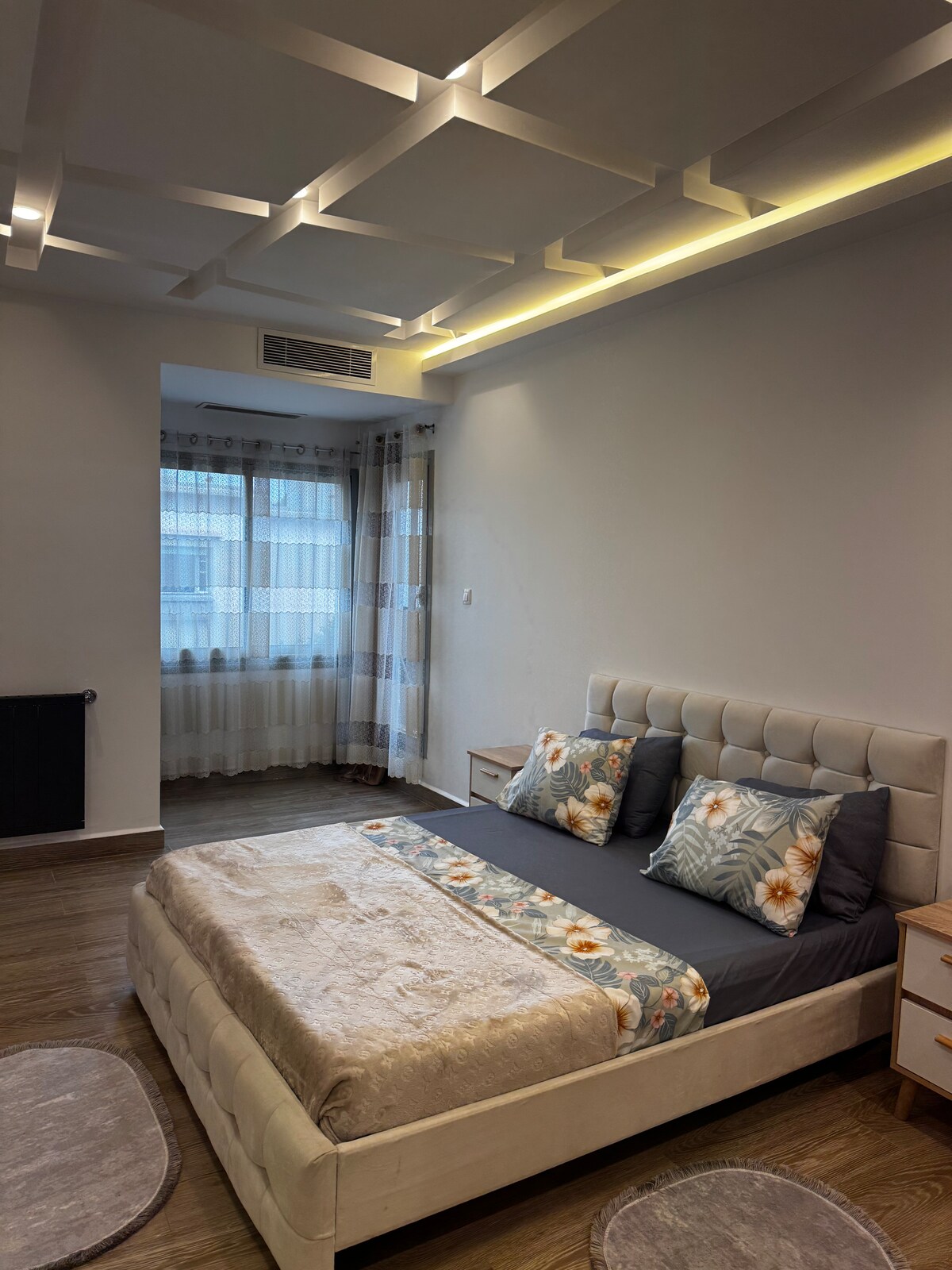 F3 completely renovated and equipped, located on the 1st floor in Hussein Dey, opposite the Oasis and New Day hotels. Ideal location: 5 min from Amirouche metro, 300 m from train and tram, and 15 min from Houari Boumediene airport. About 15 minutes from the center of ALGIERS by tram Close to the Promenade des Sablettes and Aquafortland (accessible by tram). Free public parking available. Bright and air-conditioned apartment, with modern kitchen, Wi-Fi and TV. Perfect for short or long stays.