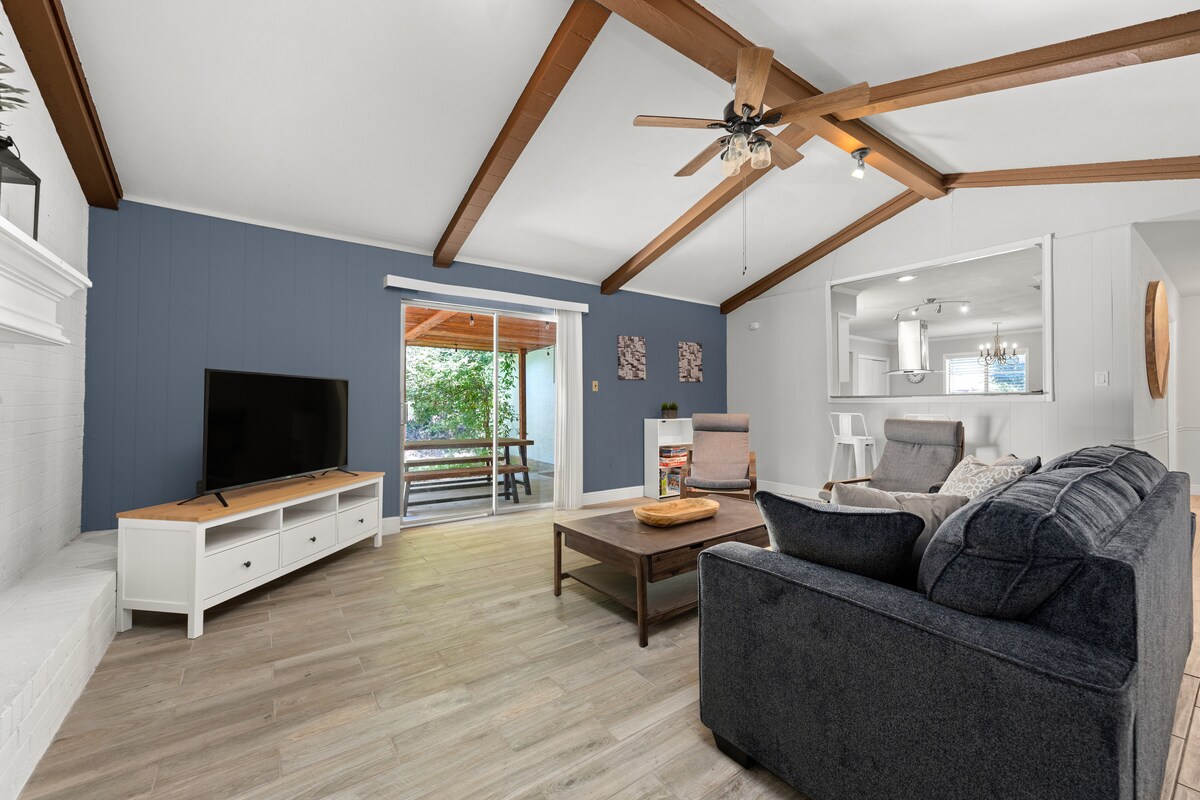 Welcome to The Rock House, a pet-friendly, 3-bedroom vacation rental in Round Rock, TX, just 23 minutes from Downtown Austin. Designed for families, groups, and getaway seekers, this mid-century home blends boho-chic style with laid-back luxury. Enjoy an outdoor hot tub, fireplaces inside and out, and a peaceful, private yard under the Texas sky. Whether you’re here to explore Austin or unwind in quiet comfort, The Rock House delivers space, style, and serenity.