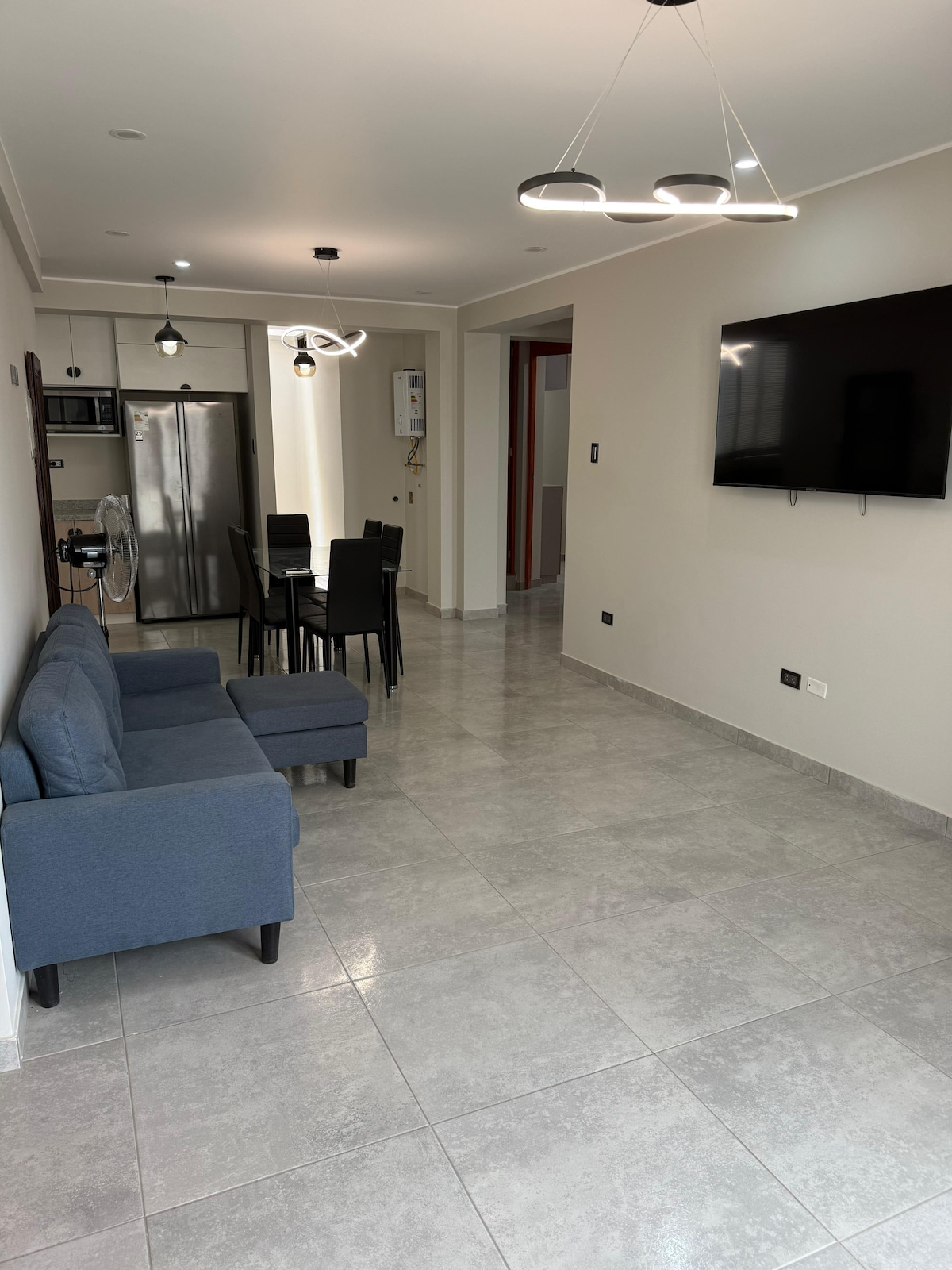 Beautiful apartment furnished by the day in the URB PUENTE BLANCO II ETAPA, tourist area near Huacachina, near Quinde shopping center, supermarkets, restobar, cafeteria, safe area with surveillance, restaurants It's a perfect place for tourists, families looking for modern accommodation with all the amenities The house is fully furnished and equipped, kitchen, dining room, living room, terrace, rooms with smart TV (including Netflix) Accommodates up to seven people.