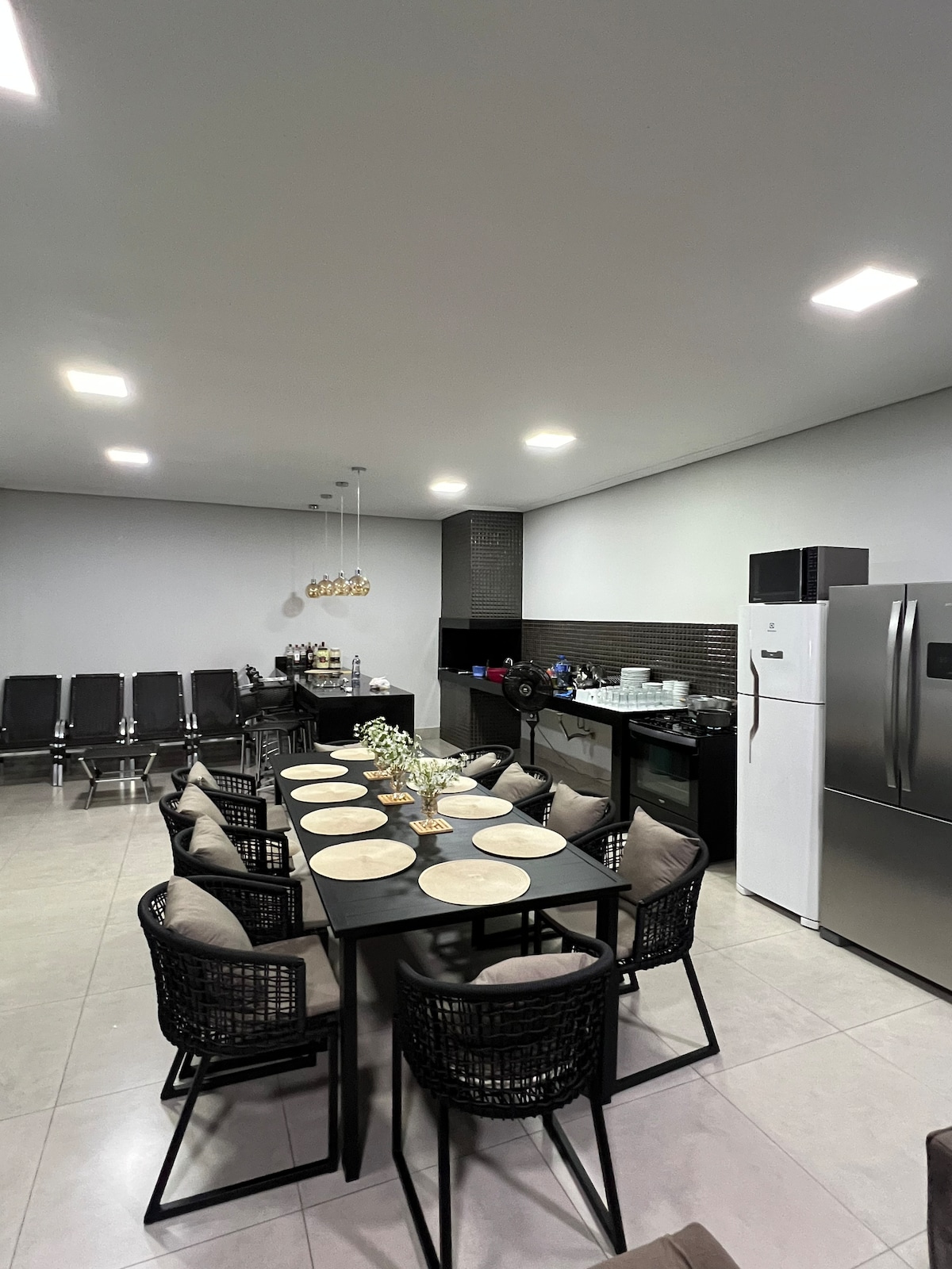 Privileged location, on the banks of the Capivara Dam overlooking the meeting of the Tibagi and Paranapanema rivers. Luxurious house with a wonderful garden with pink jasmine, swimming pool, 4 suites and capacity for 19 people. Our guests can enjoy all the common spaces of the condominium: lake, marina, grocery store, gourmet shop, gym, courts, among others. Paved access and on-site gas station. 24-hour doorman with nautical round and patrol. Airstrip and helipad