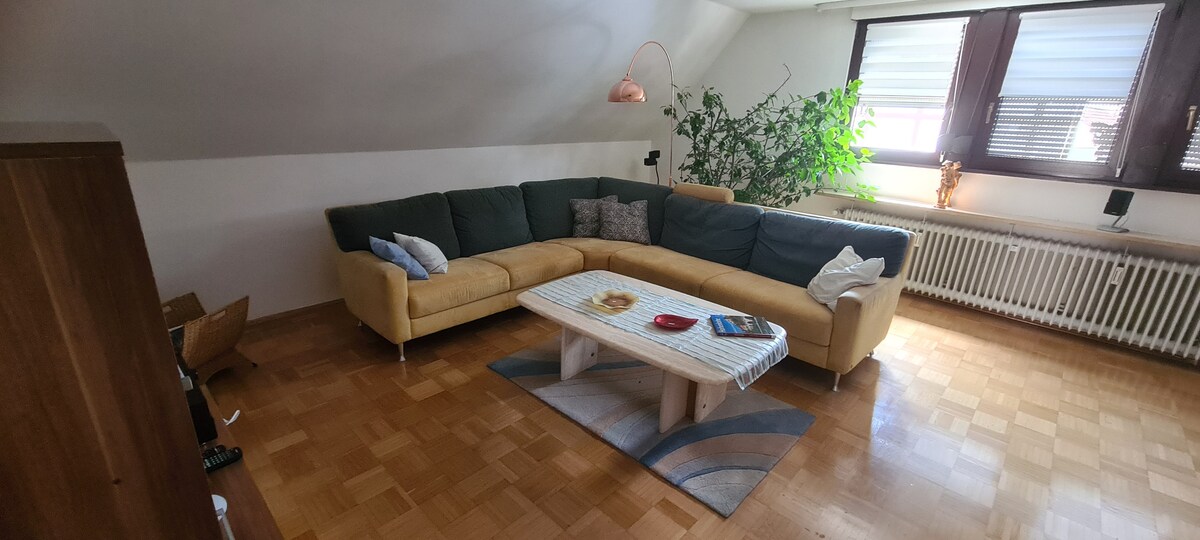 The space is an apartment with about 65 square meters on the first floor of our new building and was ready for occupancy in 2019. Sleeping accommodations are available for up to 4 people, including bed linen and towels. The kitchen is fully equipped. Private bathroom with shower and toilet. We are located on the outskirts of Weikersheim on a hillside with magnificent panoramic views over the Vorbach Valley. In case of bad weather or darkness, the big TV in the living room will do. ;)