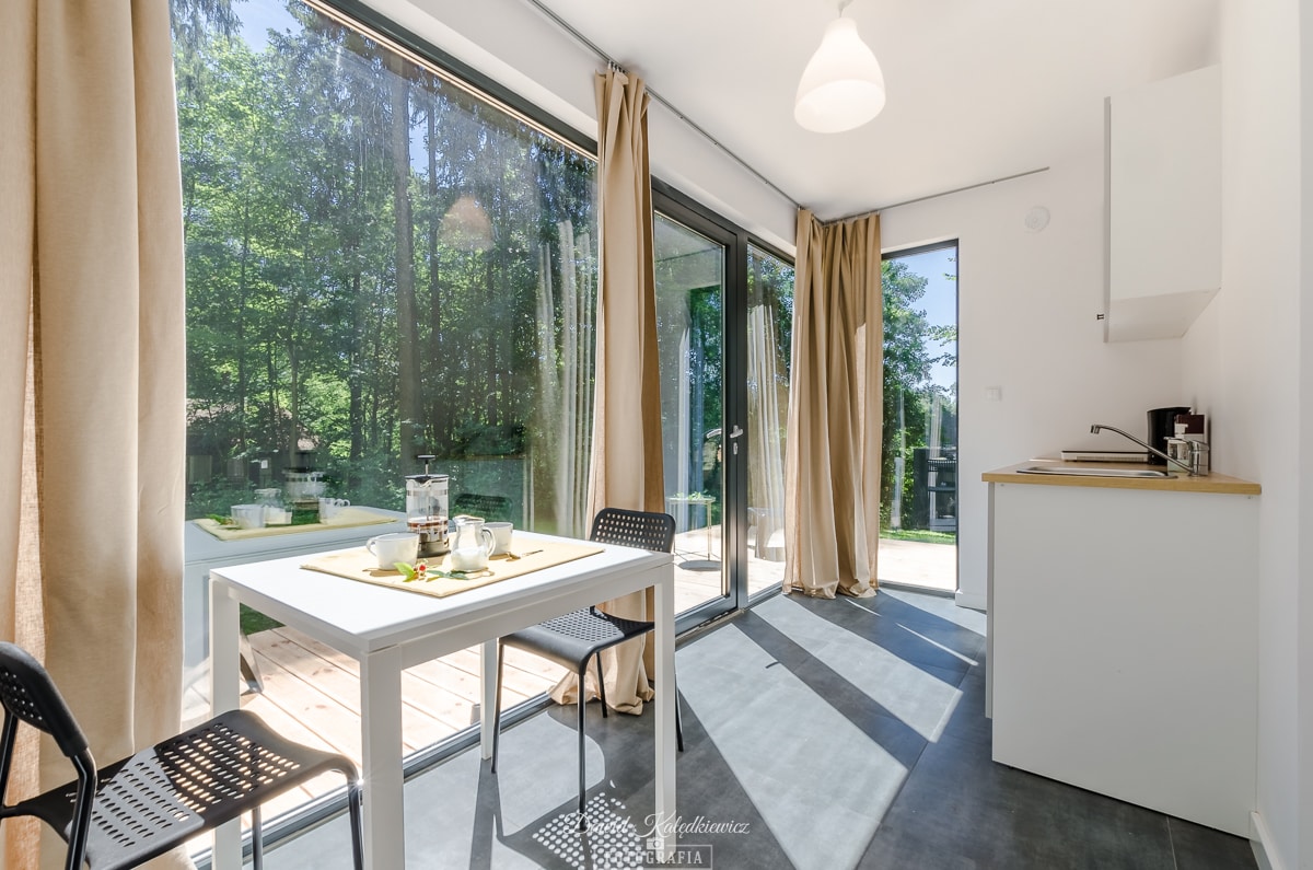 We invite you to one of our 6 houses - the LAS house. It is part of a complex we have created with 2 swimming pools, a large common area, and a playground. The house has 4 bedrooms, a living room, a dining room, a well-equipped kitchen, 2 bathrooms and 2 terraces. It will be comfortable for 8-10 people, in the case of families with small children it will accommodate about 12 people. There are forests, lakes, walking paths and cycling routes in the area. The place has its own unique atmosphere and has already gained a lot of loyal fans. It is perfect for family stays.