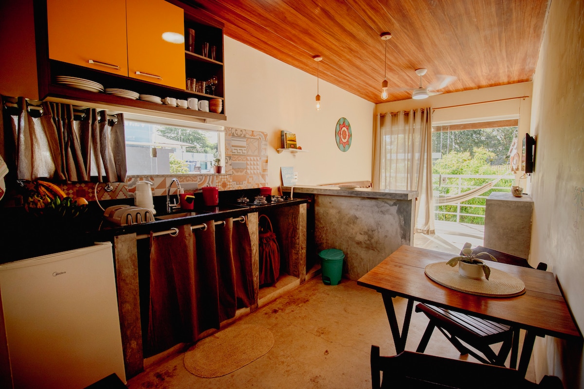 Cozy house on the first floor, 12 minutes from the beach, newly built on the island of Boipeba, on a residential street. Independent entrance, equipped kitchen integrated into the balcony with table for 4 people and hammock. Bedroom with queen-size bed, air-conditioning and ceiling fan. Bathroom with a sink in the hall. Ecological treatment of water, without harming nature Book your stay at Casa Delas! It is an ideal space for couples and long-stay home offices during the low season, near the sea.