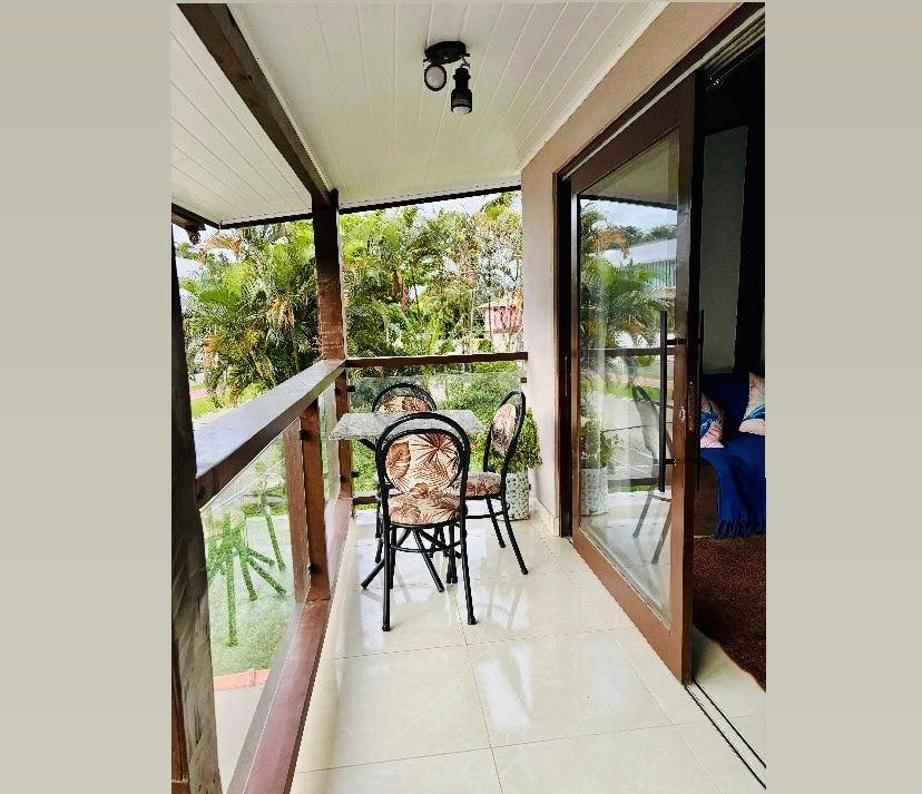 Apartment in the main house on a small farm with a large balcony overlooking the river, with a waterfall and slide that belong to the property. Panoramic ceiling in the 4m² bedroom with a cover that opens and closes via a switch on top of the king-size bed with a view of the stars. Bathroom with bathtub with stunning view. It has hot and cold air-conditioning, a fan, a 65” 4k Smart TV with Netflix, fast Wi-Fi, an equipped kitchen with a refrigerator, a cooktop, an electric oven, a microwave, a retractable and reclining sofa, sun loungers and a hammock.