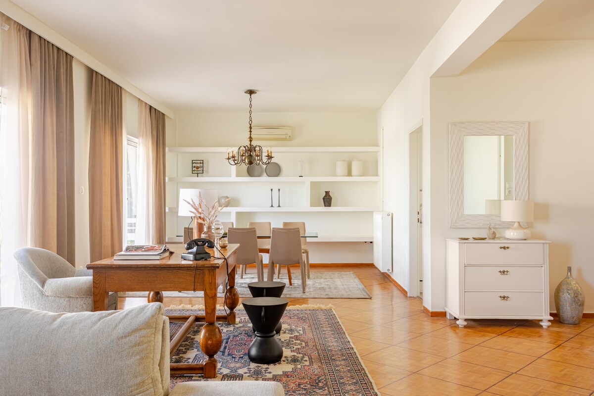 A charming apartment features a comfortable living room, serene bedroom, and a fully equipped kitchen.Relax in the spacious bathroom after a day of exploration. Ideally located, it's just a short ride to both Athens historic center and beautiful beaches. Enjoy nearby amenities:supermarkets, cafe, bakeries, restaurants, shops, and parks. Perfect for couples, families, or travelers.This apartment combines comfort,convinience and local charm. We can’t wait to host you!