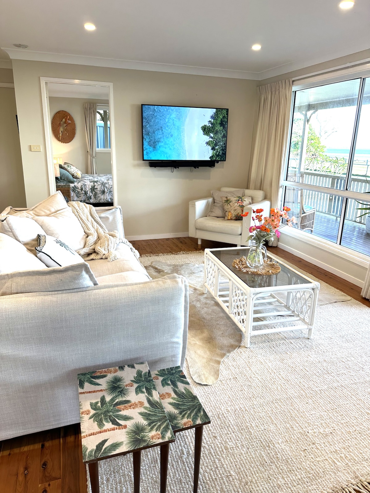 Kick back and relax at one of Yamba’s original beach shacks right on the doorstep of Pippi Beach. Recently updated, the 1960s shack has been restored to add a fresh and homely feel, whilst keeping the old school charm. Perfectly located the shack enjoys the sound of the ocean and an easy walk into town. The living area opens onto the deck and covered patio area. The perfect spot to enjoy a meal or a snooze. NEW: Split system aircon in living and bedrooms