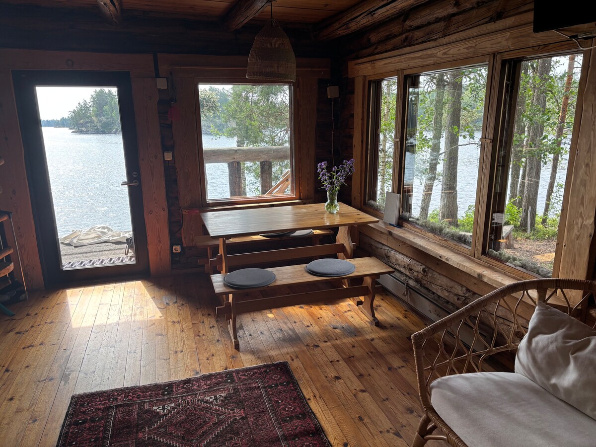 Experience the traditional Finnish lake cottage life. This log cottage was built in the 1800's with hand carved logs. It is located on a beautiful lake shore with fantastic views. Here you can enjoy nature and total peace just a 10 min. car drive from Savonlinna centre. You have a good chance of spotting the endangered Saimaa ring seal, often swimming in front of the cottage. Both the cottage and the sauna are just a few meters from the lake shore. There is a rowing boat for guests to use.
