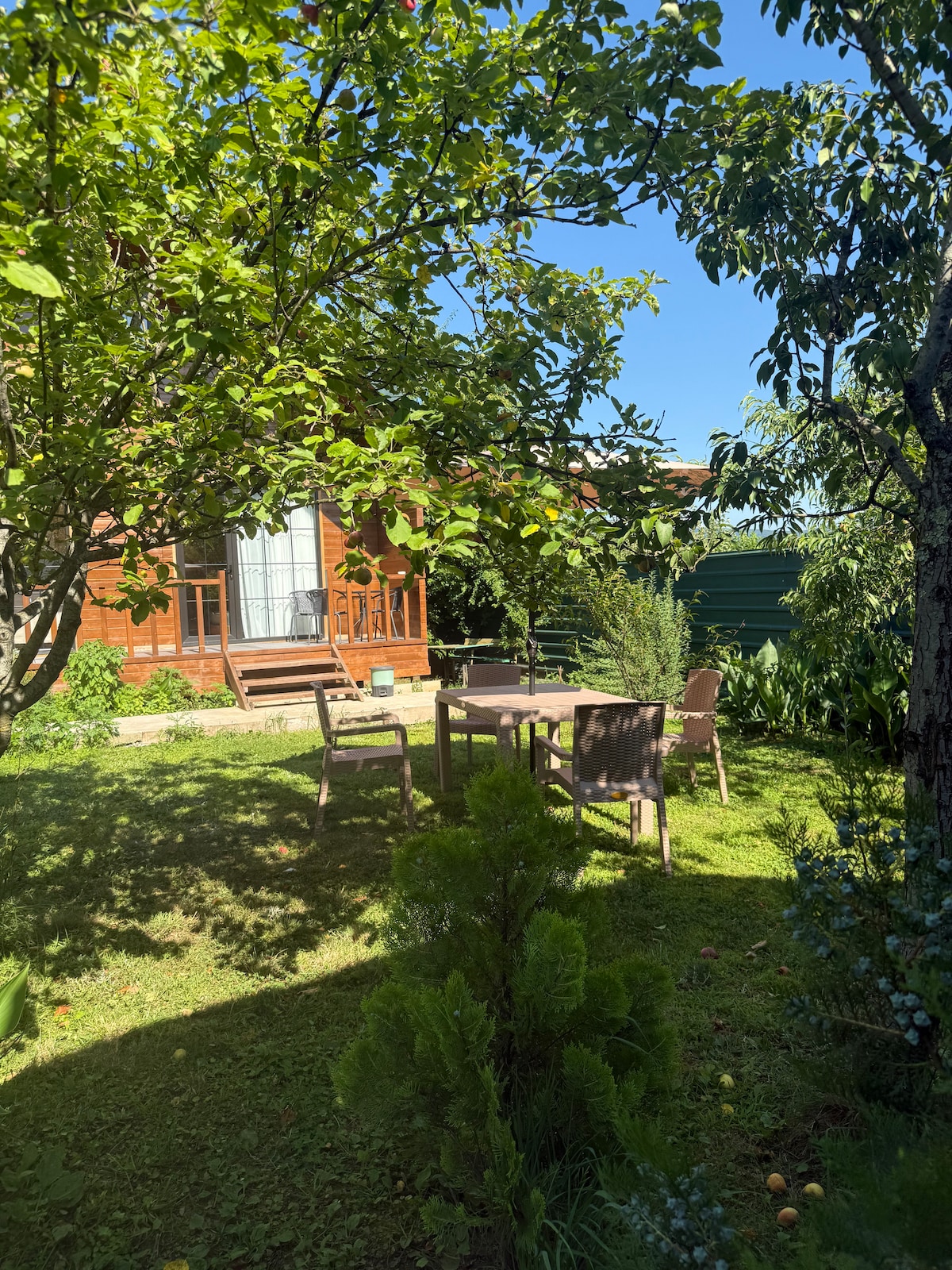 Спокойное жилье для расслабленного семейногo отдыха. Водворе три домика из брюса, большой общий басеин,зона барбекю, в каждом домике, ванната комната, кухня аборудована всеми нужными вещами, две спалльни, wi - Fi. Все для вашего незабываемого отдыха.