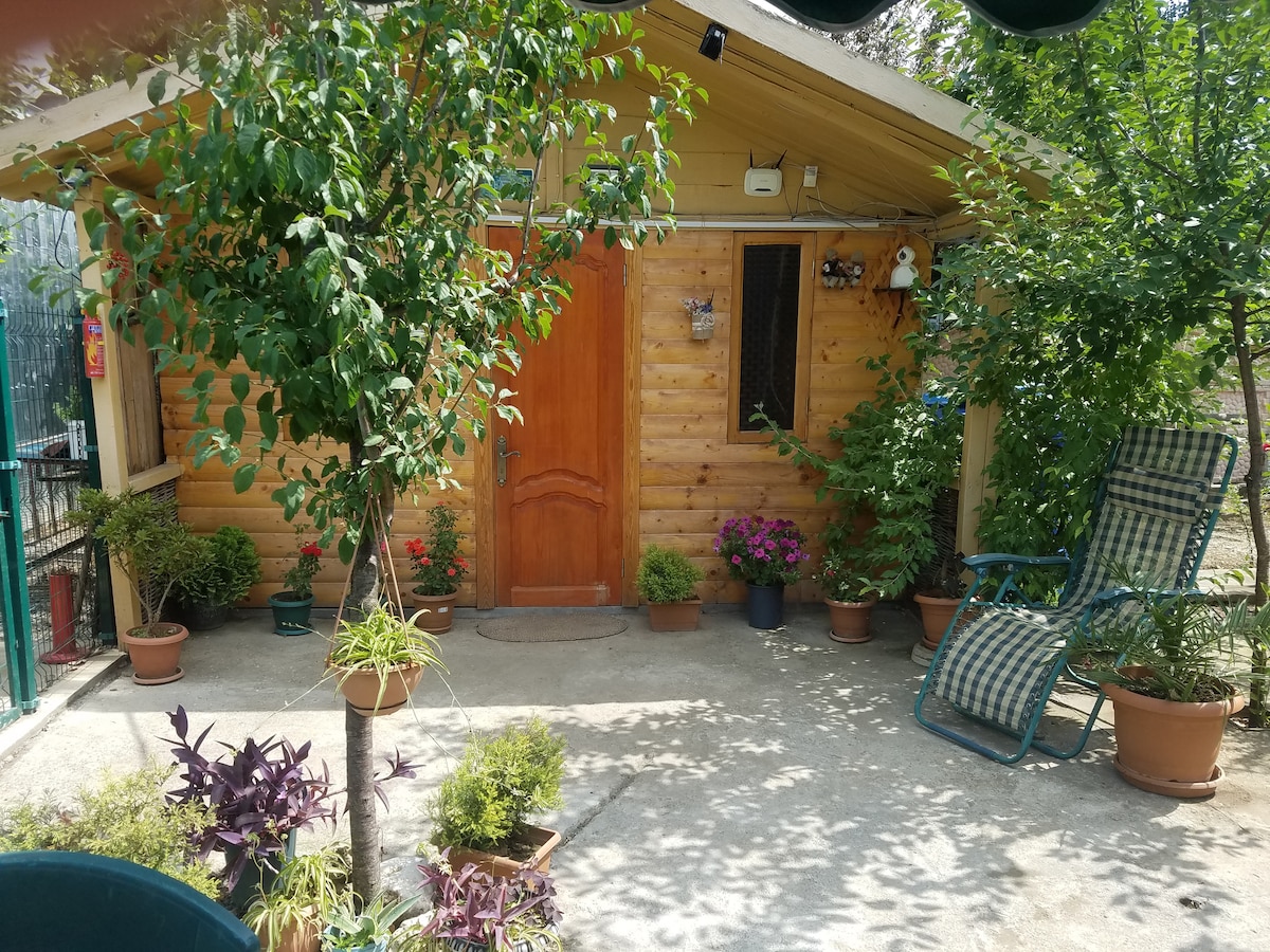 Discover unique living in a wooden cottage in tranquil rural Georgia. It is located in the middle of an orchard on the property of the guest house. This is for those who appreciate quiet, clean relaxation and a return to a simple and basic lifestyle. The house is environmentally friendly and only natural products, local materials and recycled raw materials are used. House in the middle of an orchard. 26 sqm with its own terrace and garden. We prepare breakfasts upon prior request.