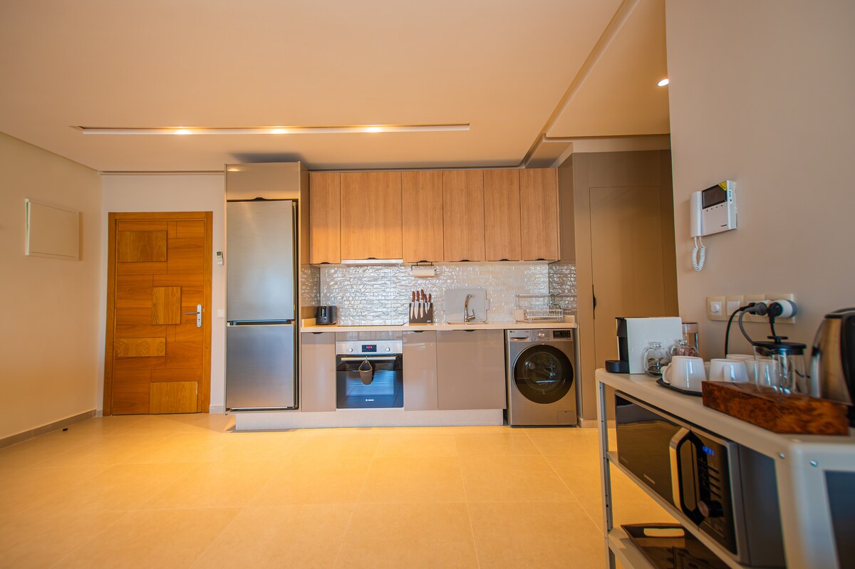 Stylish and bright apartment, quiet and comfortable, perfect for respectful visitors and especially for surf lovers. We strive to provide everything you need for a pleasant stay. Amenities include high-speed internet, a fully equipped kitchen, a warm bathroom, and safe, free parking. Important note: Moroccan couples are required to present a marriage certificate, in accordance with local regulations. Thank you for your understanding..