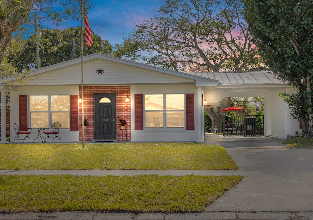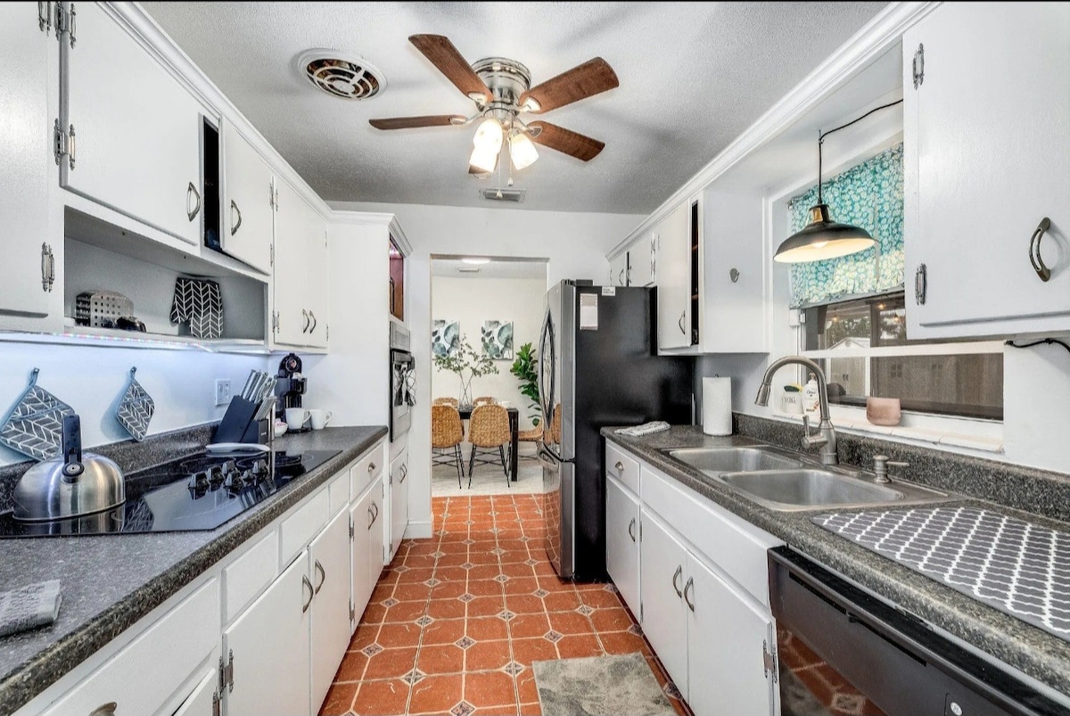There’s no place like the Cocoa Villa 🌴🏖️ Experience the charm of Cocoa Beach at our Cocoa Villa! Nestled just a block from both the beach and downtown, this modern Spanish-style retreat offers convenience and comfort. With 2 bedrooms, 4 beds, and inviting seating areas, it's your perfect coastal getaway. Explore the town or soak up the sun, then return to your peaceful oasis to relax by the firepit under the stars. Your unforgettable beach trip awaits!