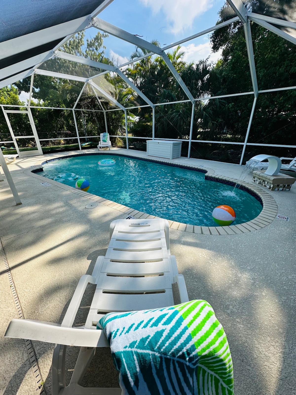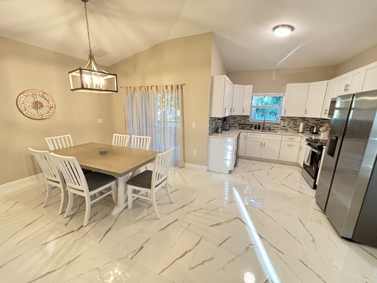 Spacious house in a quiet, safe residential area. Just 10 minutes from the beach and restaurants, and 5 minutes from supermarkets like Publix. The home features 3 bedrooms, 2 full bathrooms, a private heated salwater pool and a large BBQ grill. Located on a cul-de-sac, the house offers privacy and no traffic. Enjoy the covered garage for 2 cars and free street parking. Ideal for families or groups looking to relax and unwind in comfort. Book now for a peaceful stay close to all essentials!