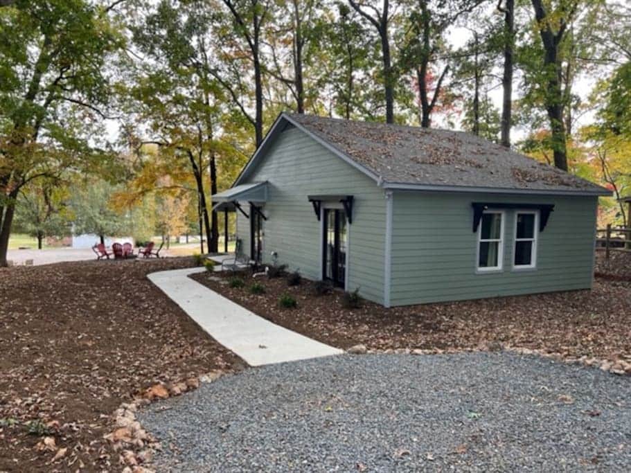 Newly constructed unique cottage includes three bedrooms, two full bathrooms, covered porch with dining table, grill and a firepit. Very secluded property with lots of mature trees but still close to shopping and attractions. The Cottage is located behind the main house on the right side but is completely separate from the main house. It has dedicated parking and space to relax and enjoy nature. The driveway for the cottage is shared with the main house.