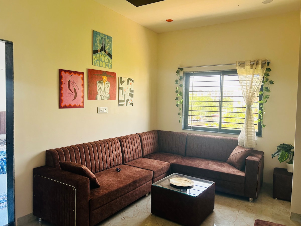 Luxe Earthy Cozy 1BHK | 43 inch SmartTV, Wi-Fi, AC
